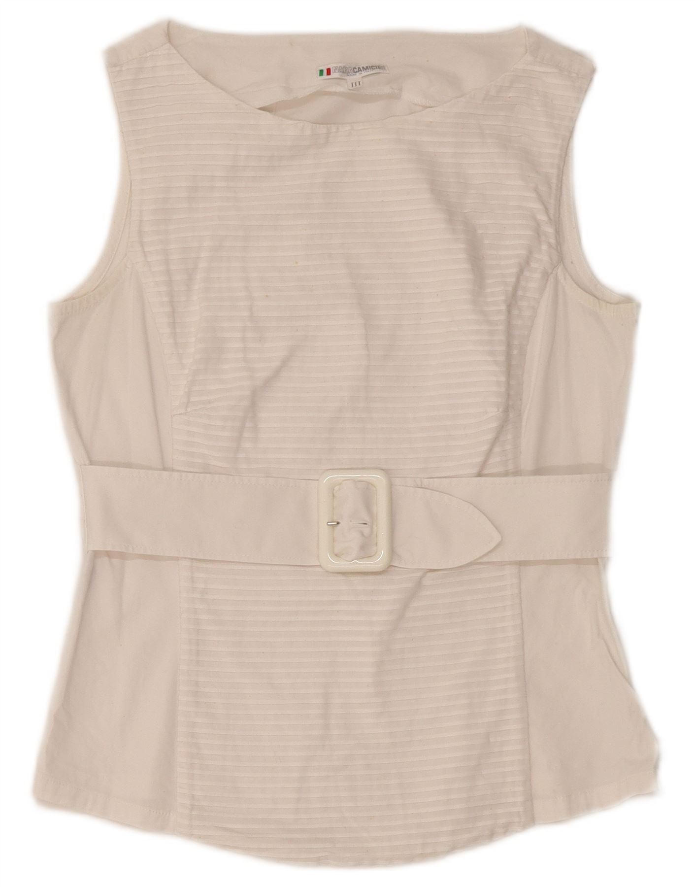 NARACAMICIE Ärmelloses Damen-Blusenoberteil, UK-Größe 8, Größe S, weiße Nadelstreifen-Baumwolle