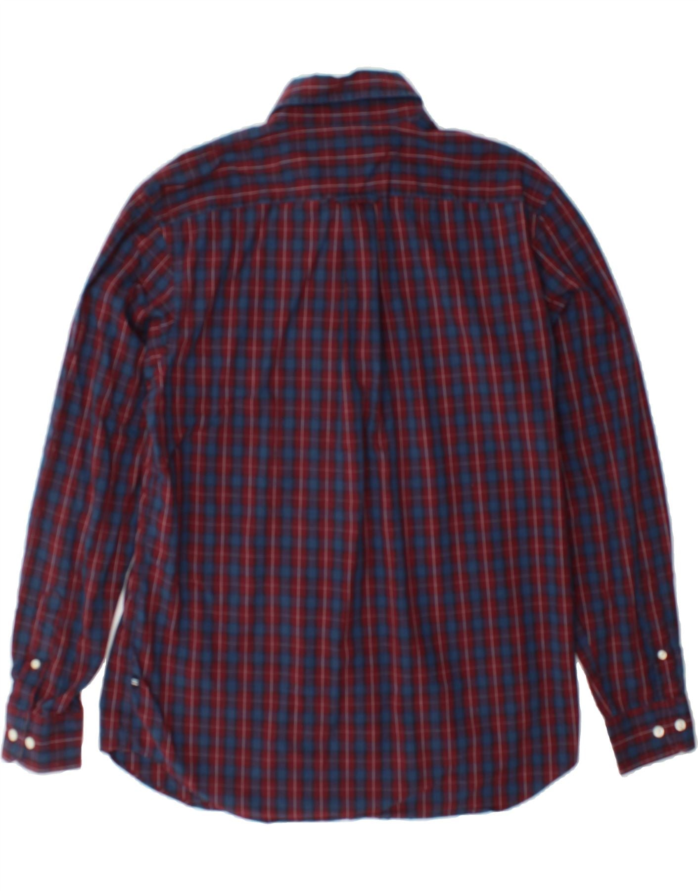 - AI Description: This pre-owned Nautica shirt is a classic piece for any man's wardrobe. Crafted from 100% cotton in a woven fabric, this long-sleeved shirt features a red plaid pattern, perfect for a preppy style. The regular fit ensures comfort, while the button closure, collared neckline, and button accents add a touch of sophistication. It has a checked feature type with practical pockets. While in excellent condition, minor visible wear is present on the collar and cuffs. Label size L. Made in Mauritius.