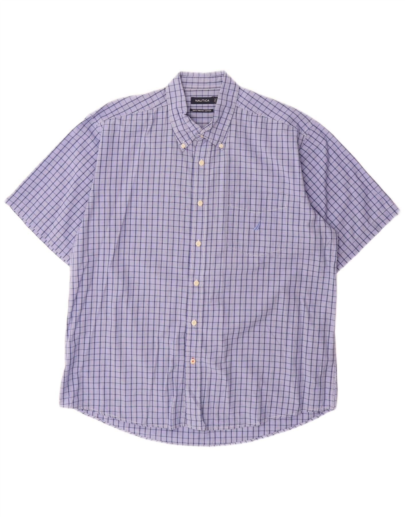 Nautica Herren-Kurzarmhemd XL, blau kariert, Baumwolle