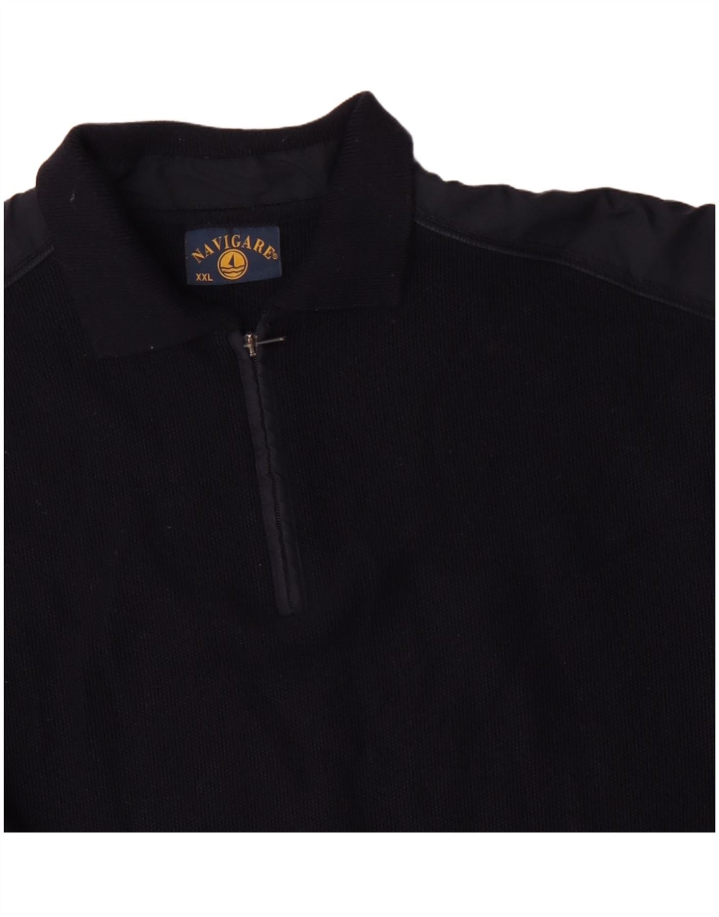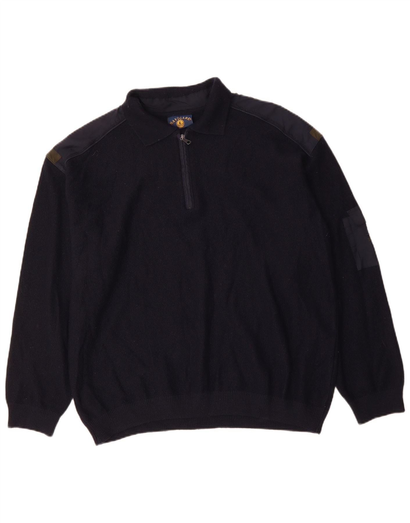 NAVIGARE Herren-Pullover mit Reißverschluss, Polokragen, 2XL, marineblaue Merinowolle