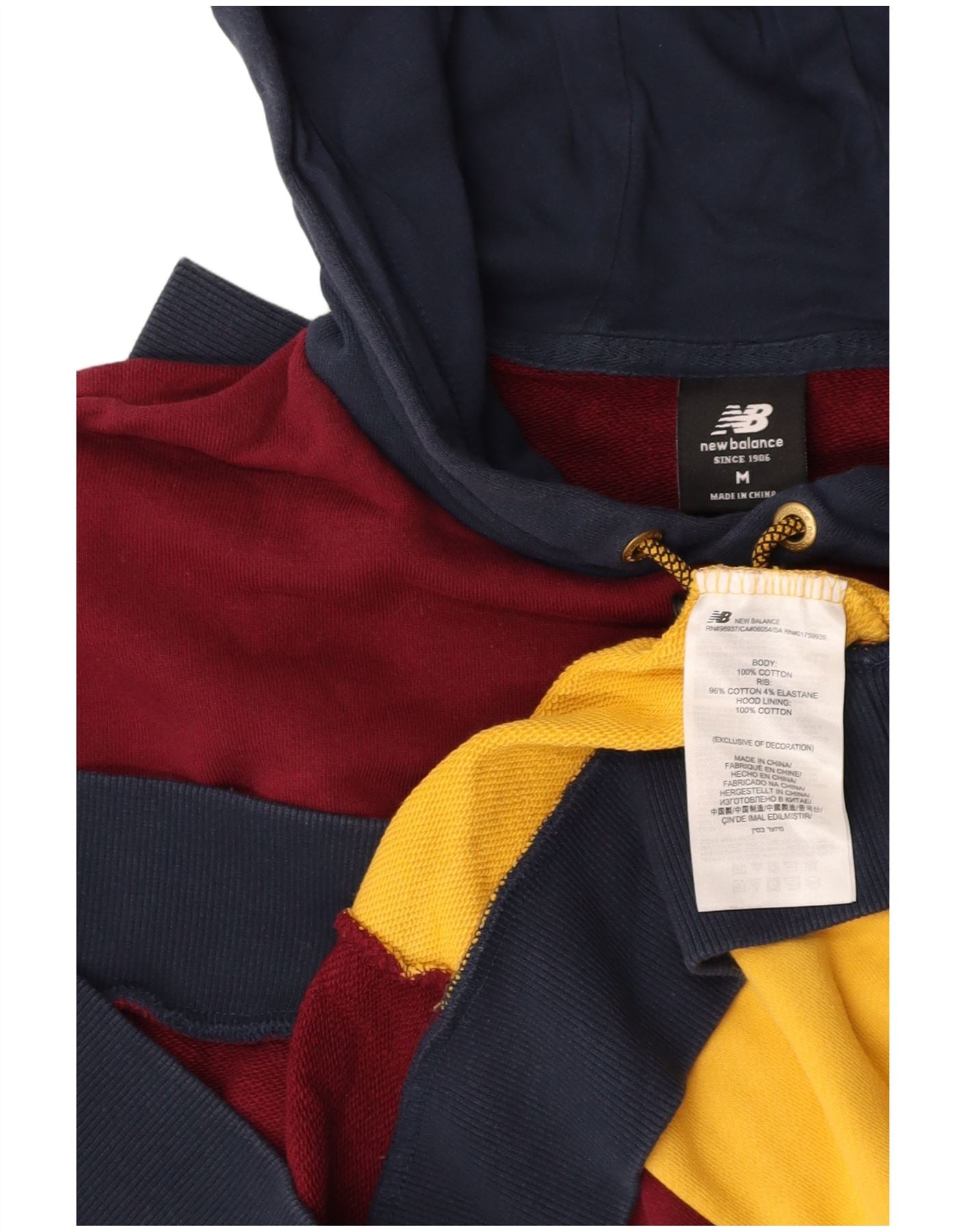 NEW BALANCE Mens Hoodie Jumper Medium Multicoloured Colourblock Cotton