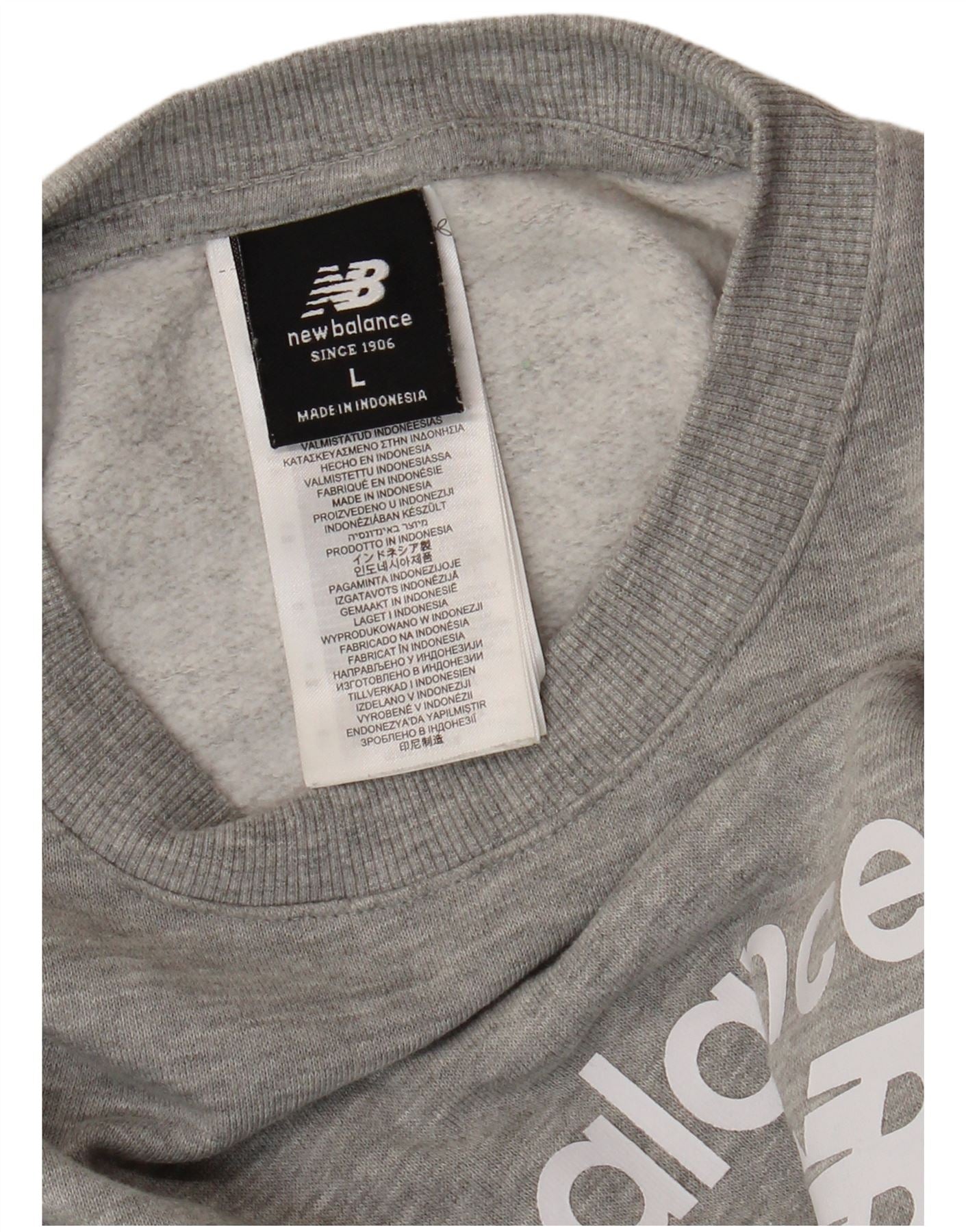 NEW BALANCE Damen Grafik-Sweatshirt-Pullover UK 16 Große graue Baumwolle