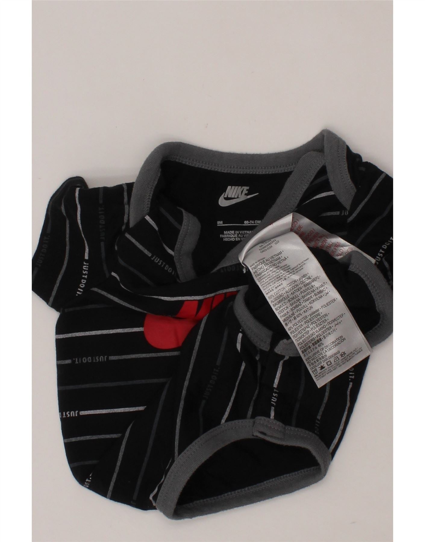 NIKE Baby-Jungen-Body mit Grafik, 6–9 Monate, schwarz gestreift, Baumwolle
