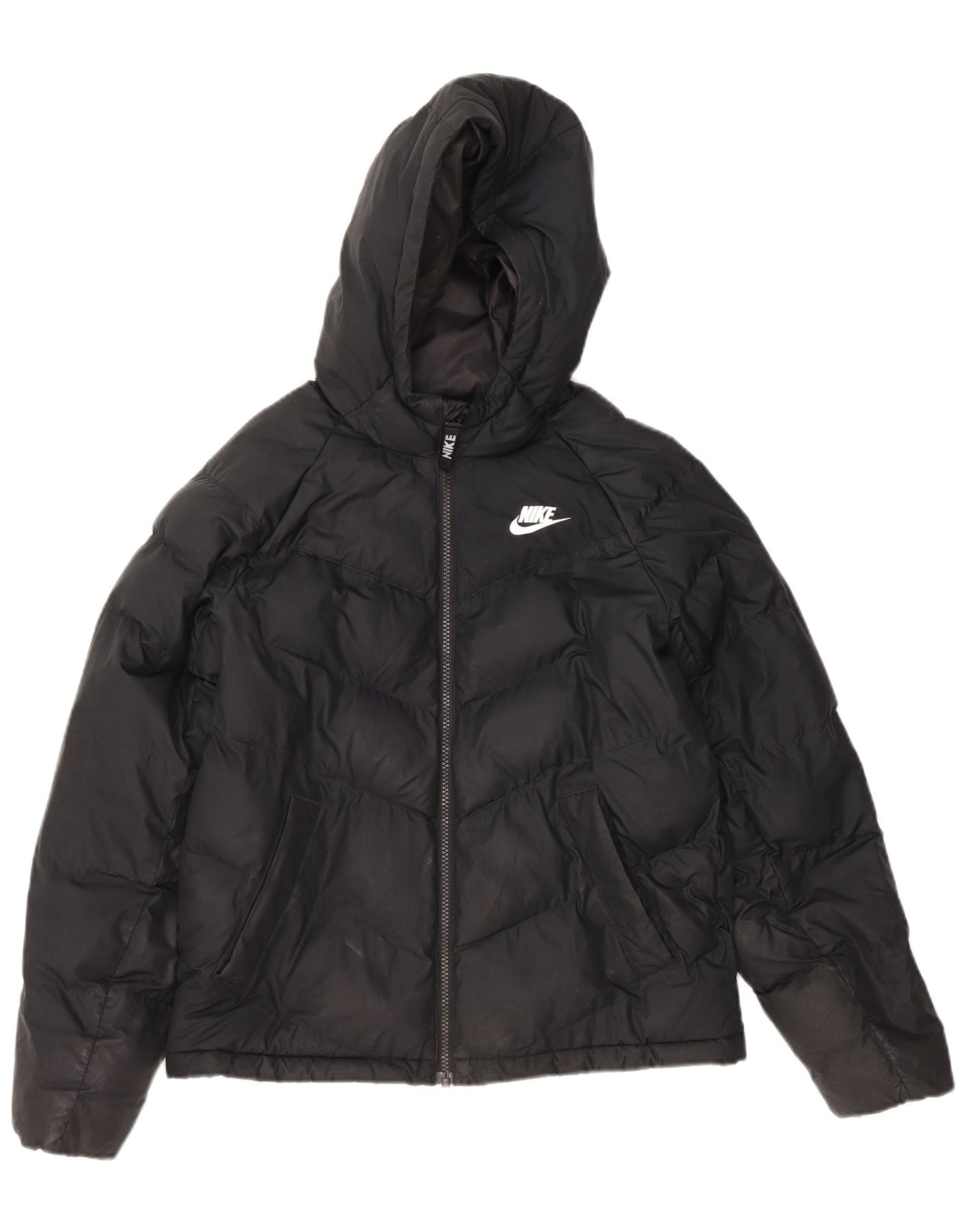 NIKE Jungen-Jacke mit Kapuze, gepolstert, 12–13 Jahre, Größe L, aus schwarzem Polyester