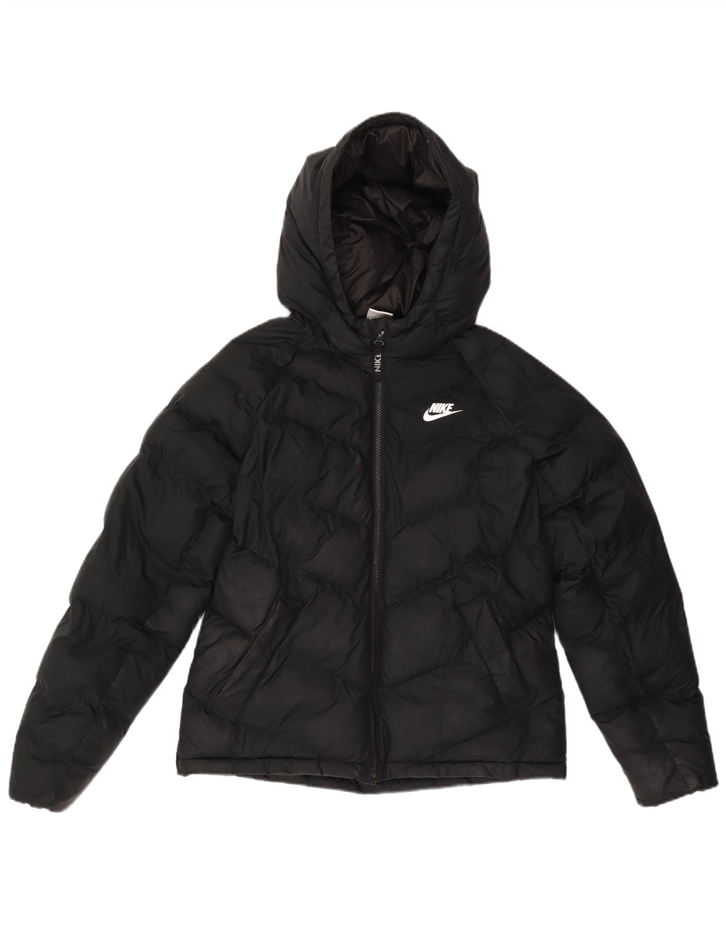 NIKE Wattierte Jungenjacke mit Kapuze, 13–14 Jahre, XL, schwarzes Polyester