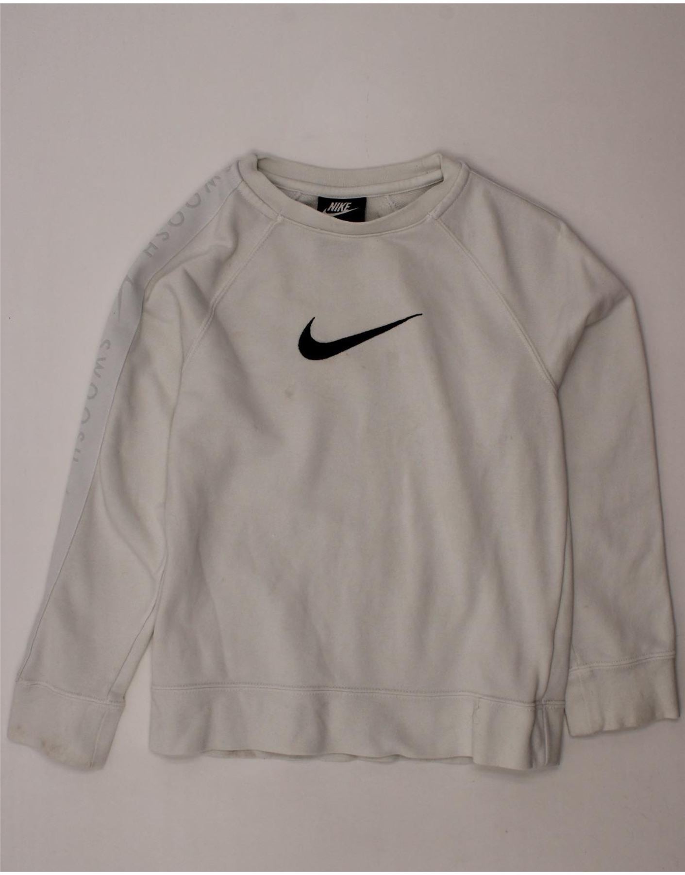 NIKE Jungen-Sweatshirt mit Swoosh-Standard-Passform, 8–9 Jahre, Größe S, Weiß