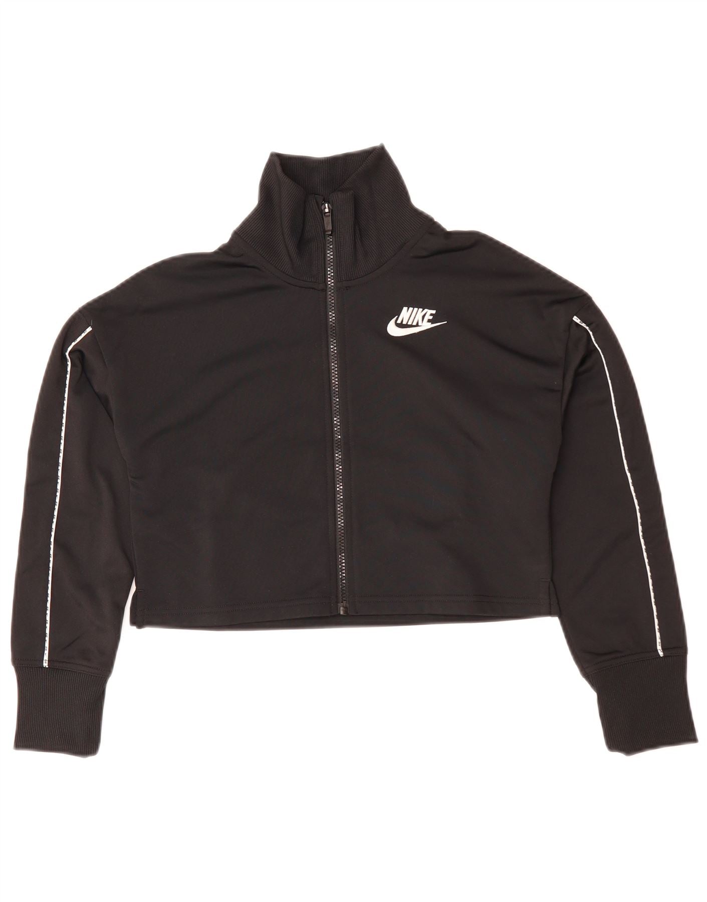 NIKE Girls Crop Tracksuit Top Jacket 12-13 Years Large Black Polyester