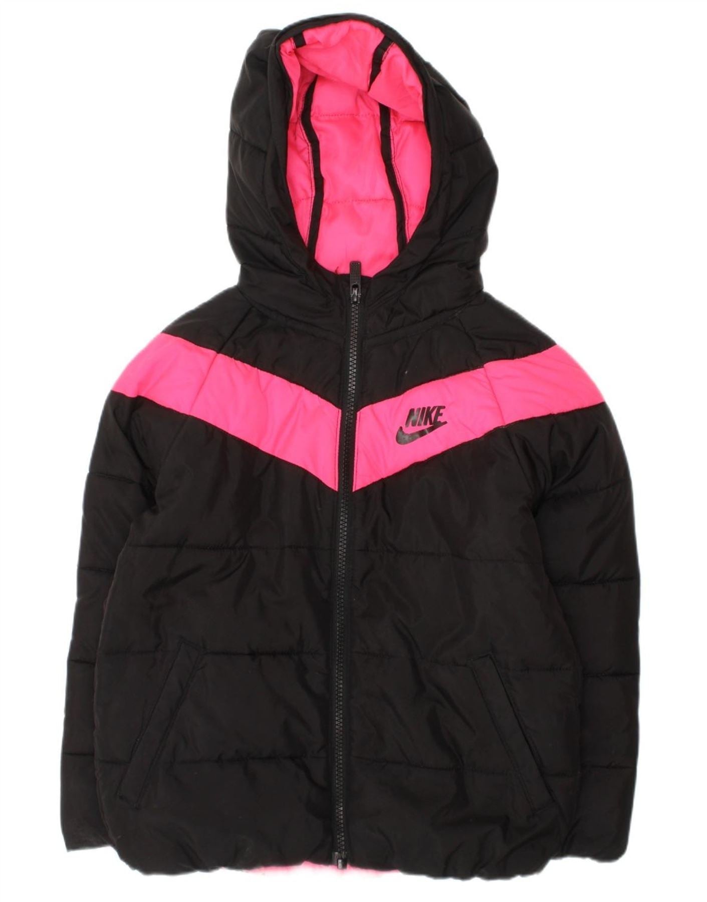 NIKE Wattierte Jacke mit Kapuze für Mädchen, 5–6 Jahre, Mittelschwarz, Farbblock