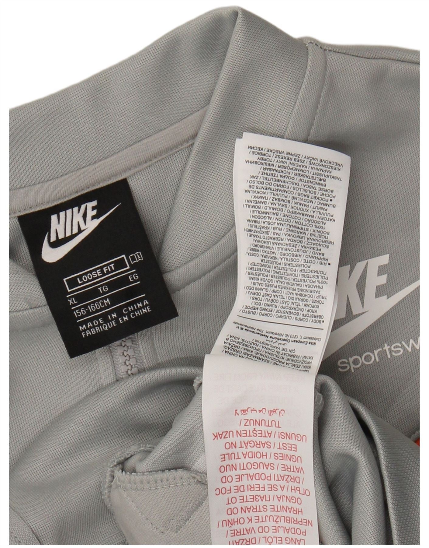 NIKE Mädchen-Trainingsanzugoberteil mit lockerer Passform, 13–14 Jahre, XL, Grau, Farbblock