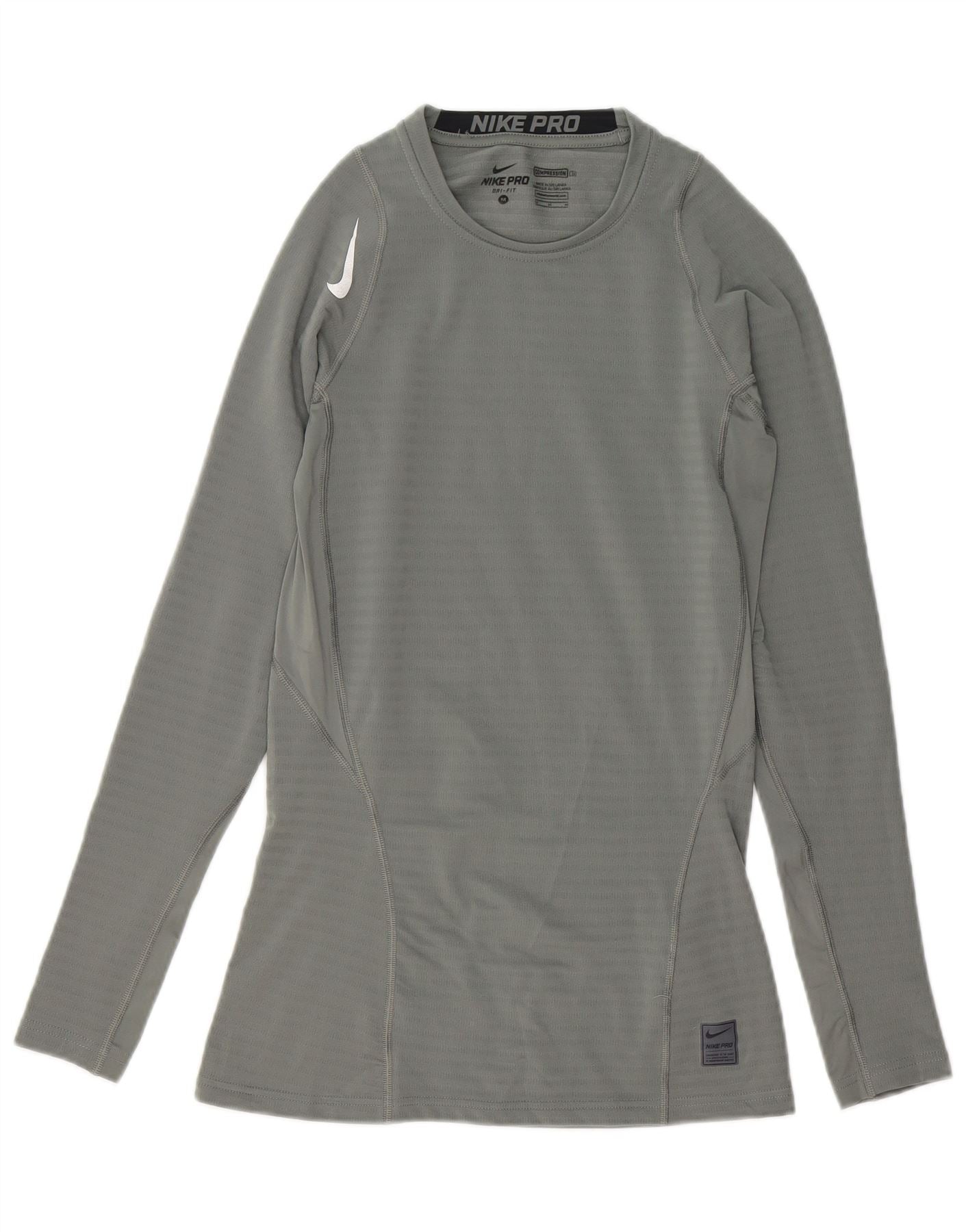 Nike Herren Dri Fit Graphic Top Langarm UK 14 Mittelgraues Polyester