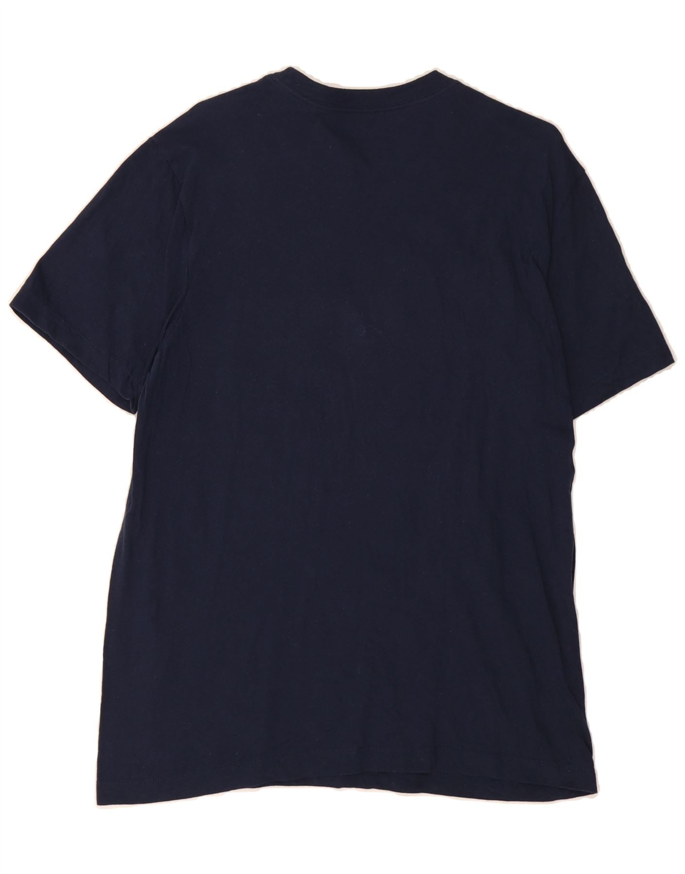 - AI Description: Elevate your sportswear collection with this pre-owned Nike graphic T-shirt top. Crafted in a navy blue jersey fabric, this short-sleeved tee features a comfortable regular fit and a classic round neck. The pullover closure and logo accent add to its sporty appeal. In excellent condition, this size M T-shirt is perfect for any casual occasion.