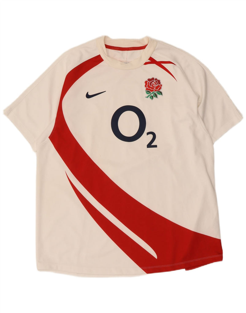 - AI Description: This Nike mens Graphic T-Shirt Top is crafted from 100 percent polyester jersey fabric. It features Nike Dri-Fit technology for a breathable and lightweight feel. The round neck and short sleeves offer a classic silhouette. Its regular fit ensures comfortable wear. A prominent graphic and logo accent celebrate England Rugby. This performance top is ideal for sports.