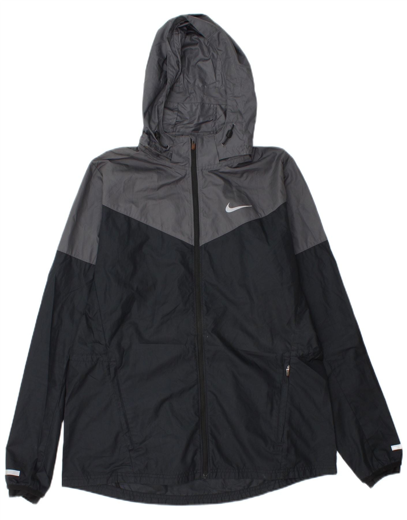 NIKE Herren-Regenjacke mit Kapuze, UK 40, Größe L, Schwarz, Colourblock-Polyester