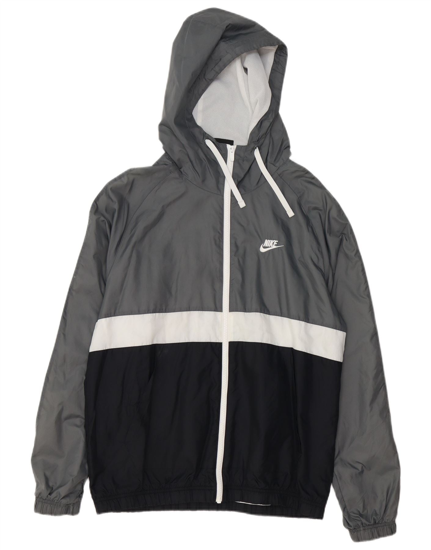 NIKE Herren-Trainingsanzug mit Kapuze, Oberjacke, mittelgraues Farbblock-Polyester