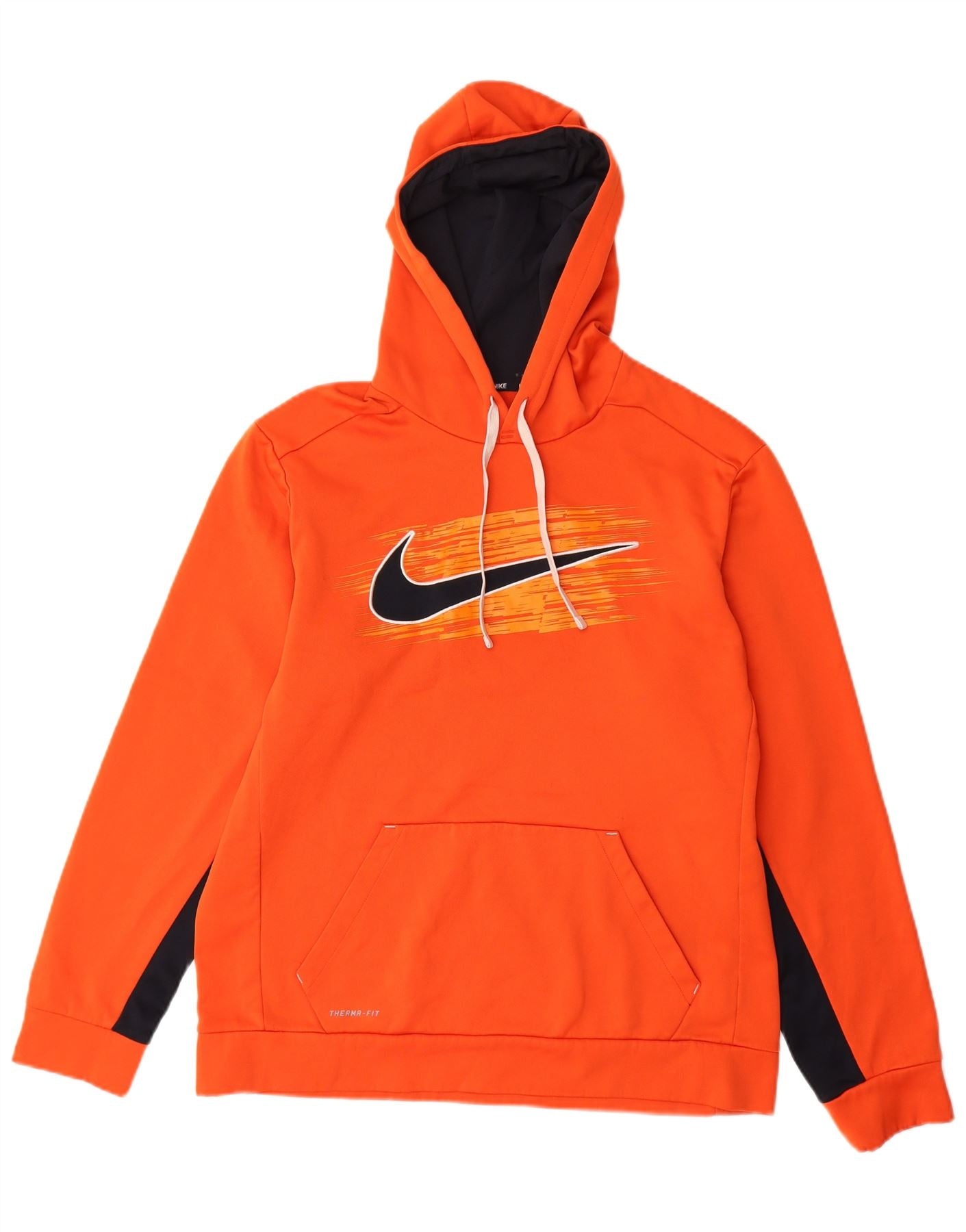 NIKE Herren Therma-Fit Graphic Hoodie Pullover Large Orange Colourblock