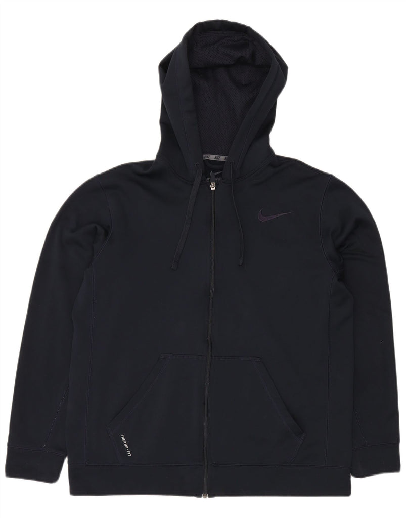 NIKE Herren Therma-Fit Kapuzenpullover mit Reißverschluss, groß, marineblaues Polyester