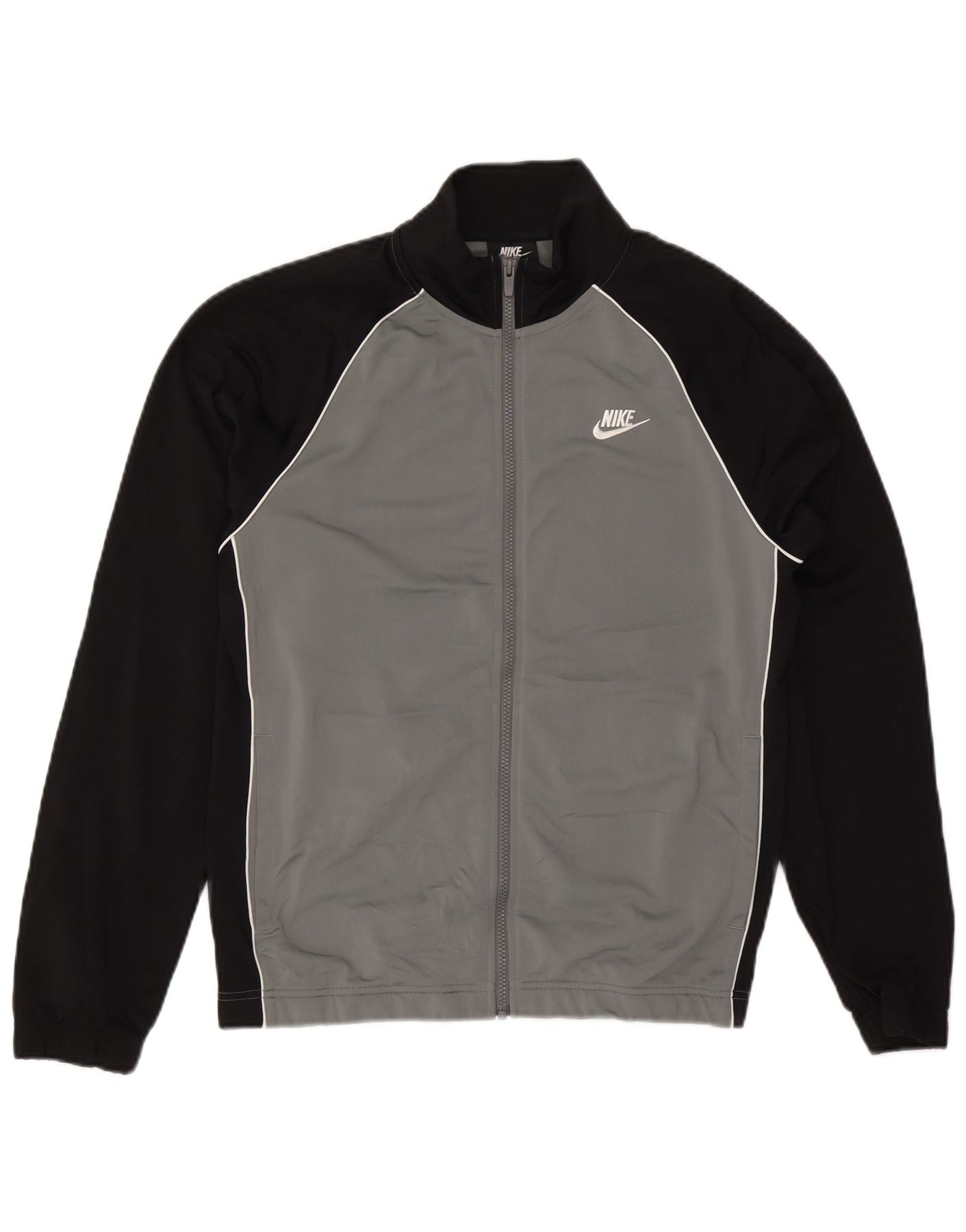 NIKE Herren-Trainingsanzug-Oberteil, Jacke, klein, graues Farbblock-Polyester