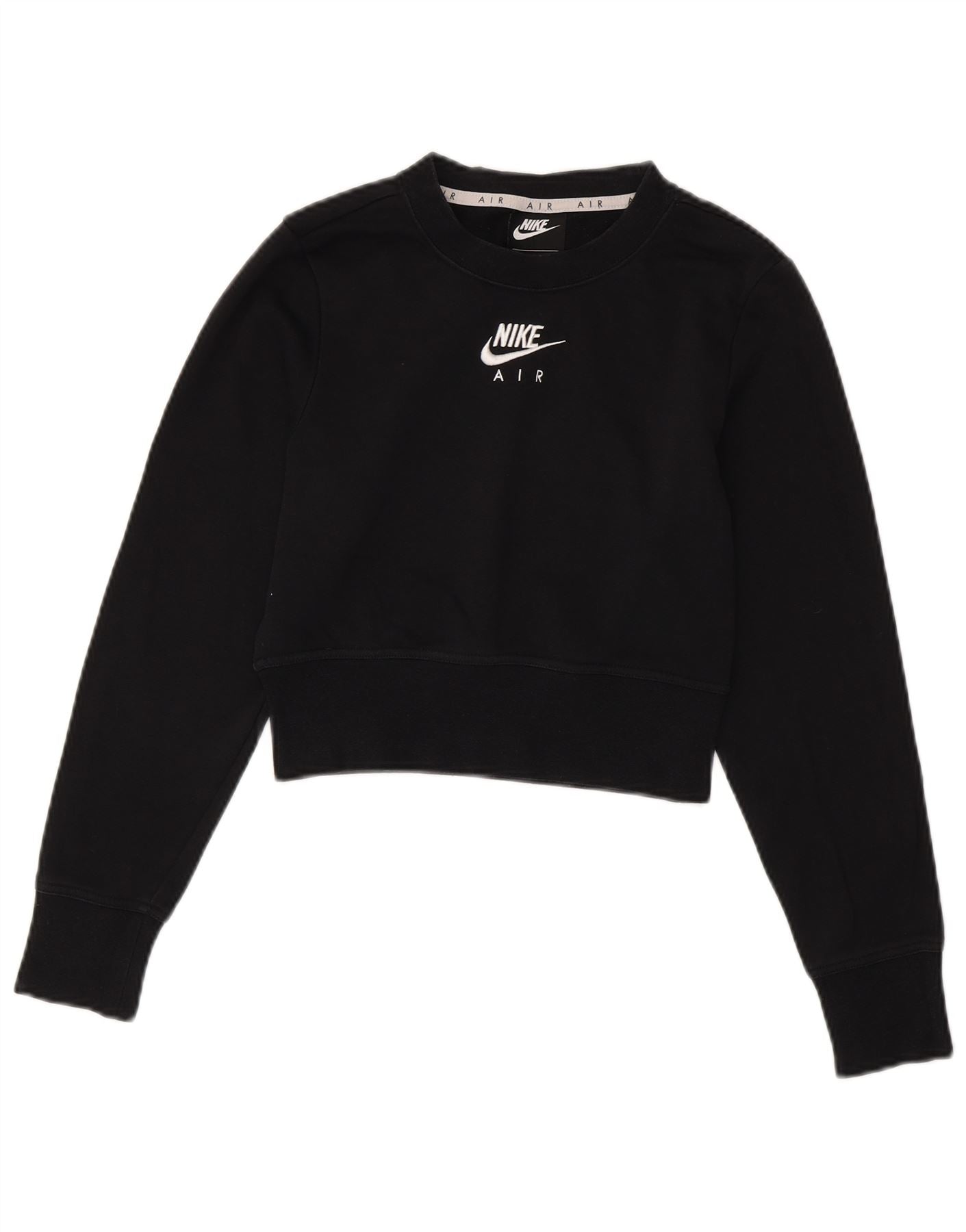 NIKE Damen Crop Graphic Sweatshirt Pullover UK 6 XS Schwarz Baumwolle