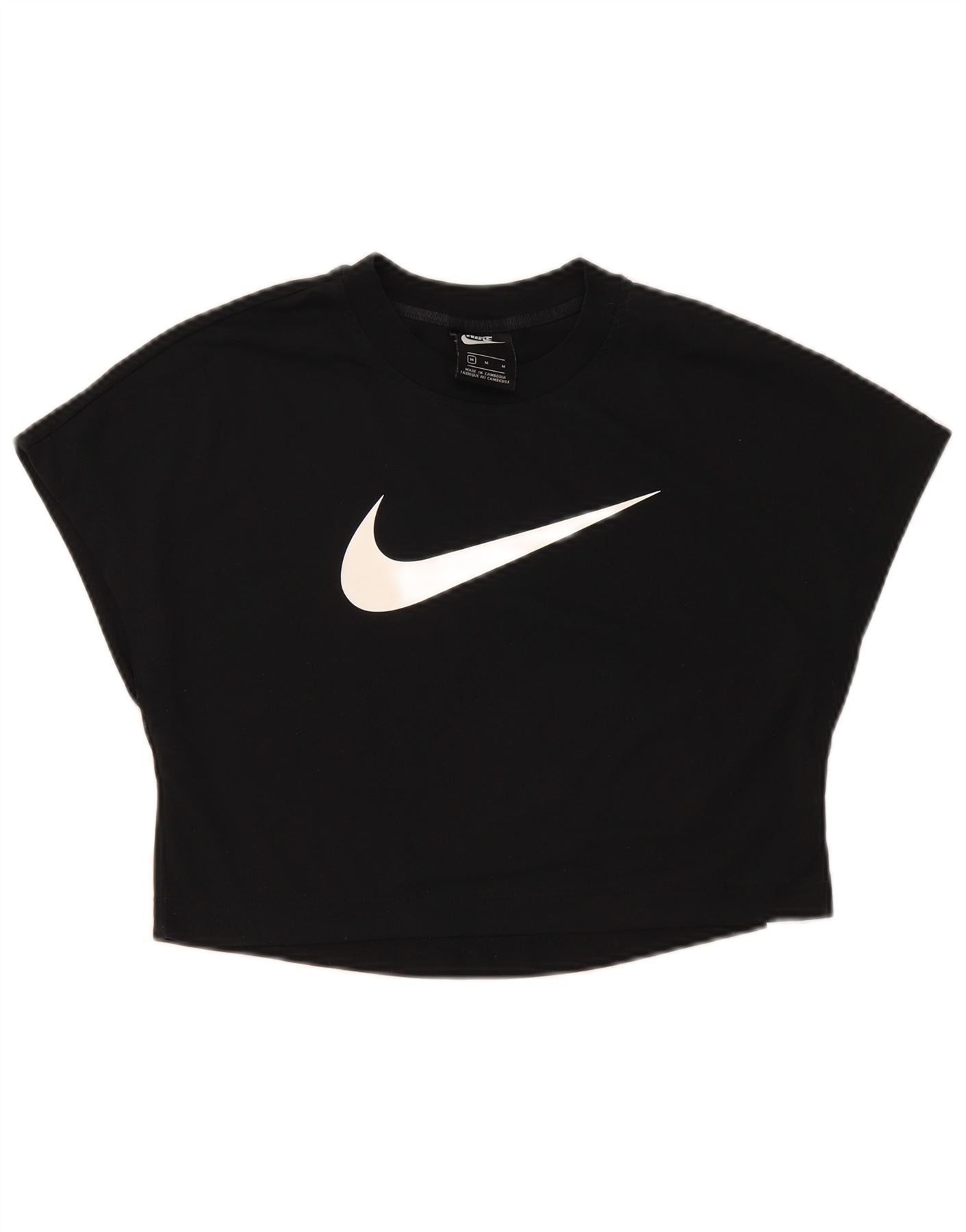 NIKE Damen Crop Graphic T-Shirt Top UK 14 Mittelschwarzes Polyester