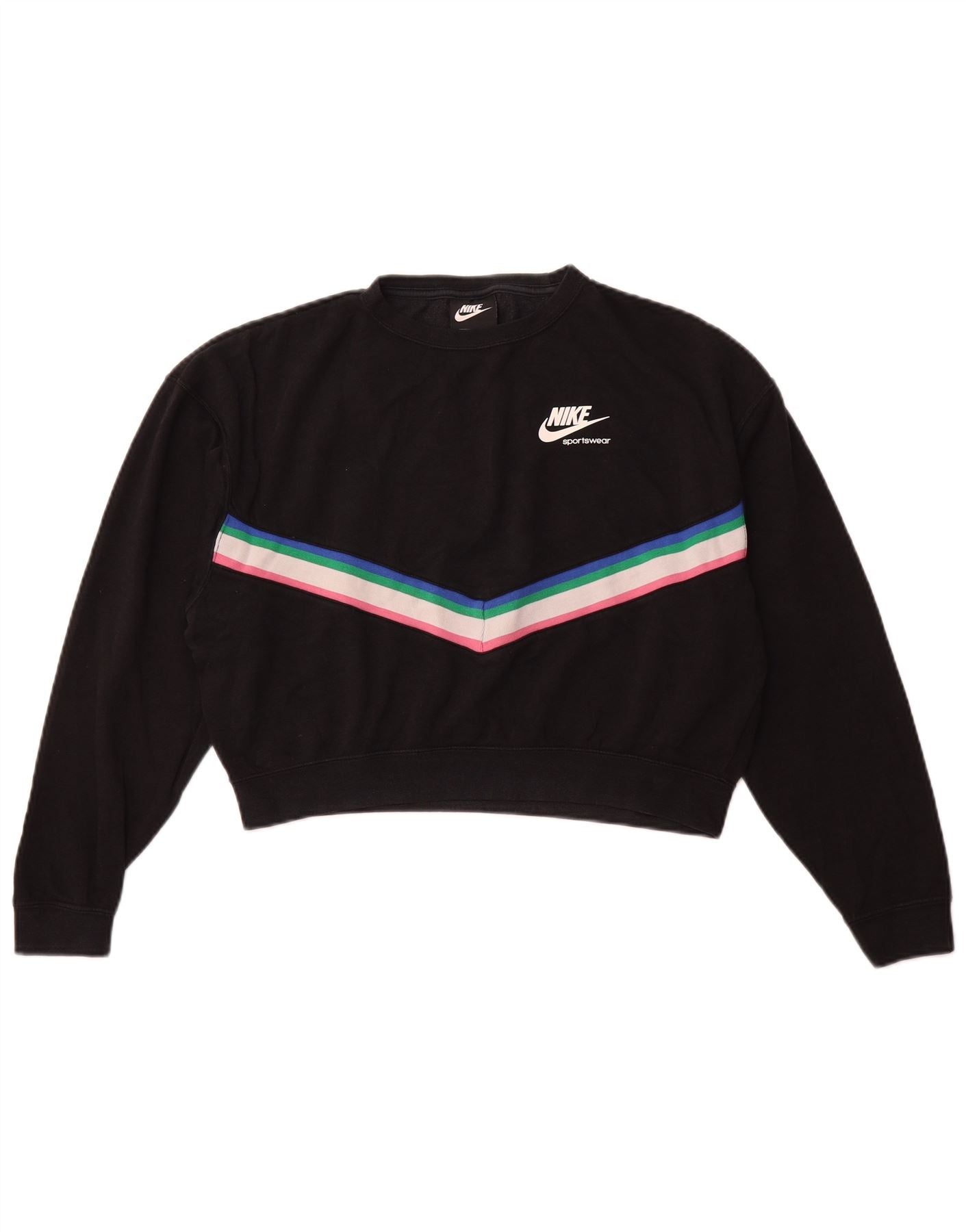 NIKE Womens Crop Oversized Sweatshirt Jumper UK 10 Small Black Striped