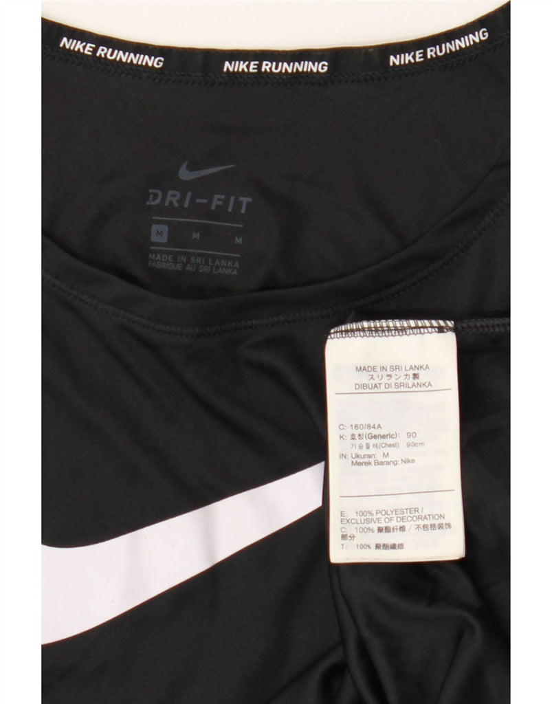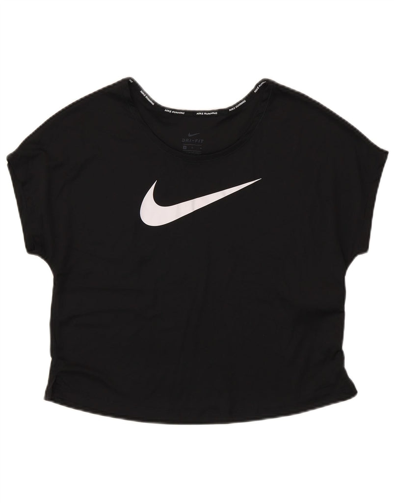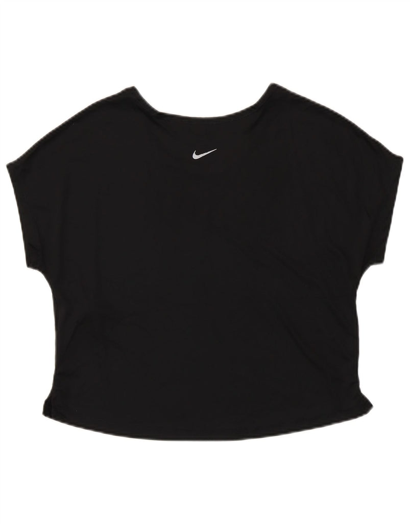NIKE Womens Dri Fit Crop Graphic T-Shirt Top UK 14 Medium Black Polyester