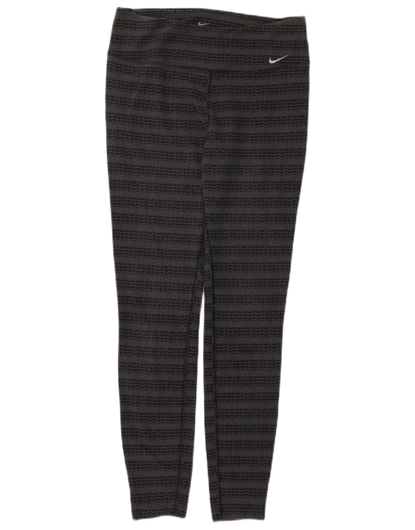 Nike Damen Dri Fit Leggings UK 12 Mittelgraue geometrische Baumwolle