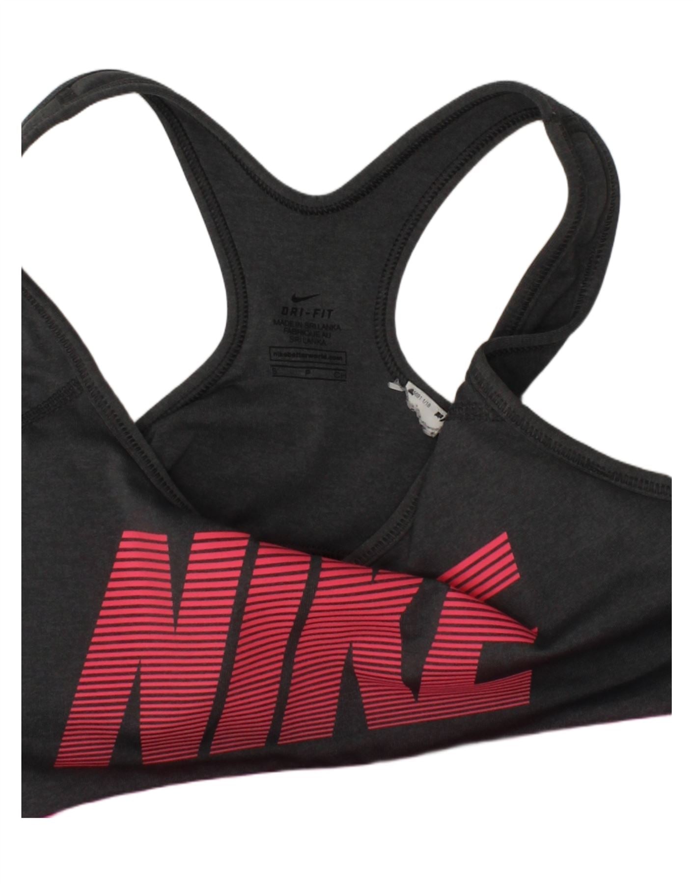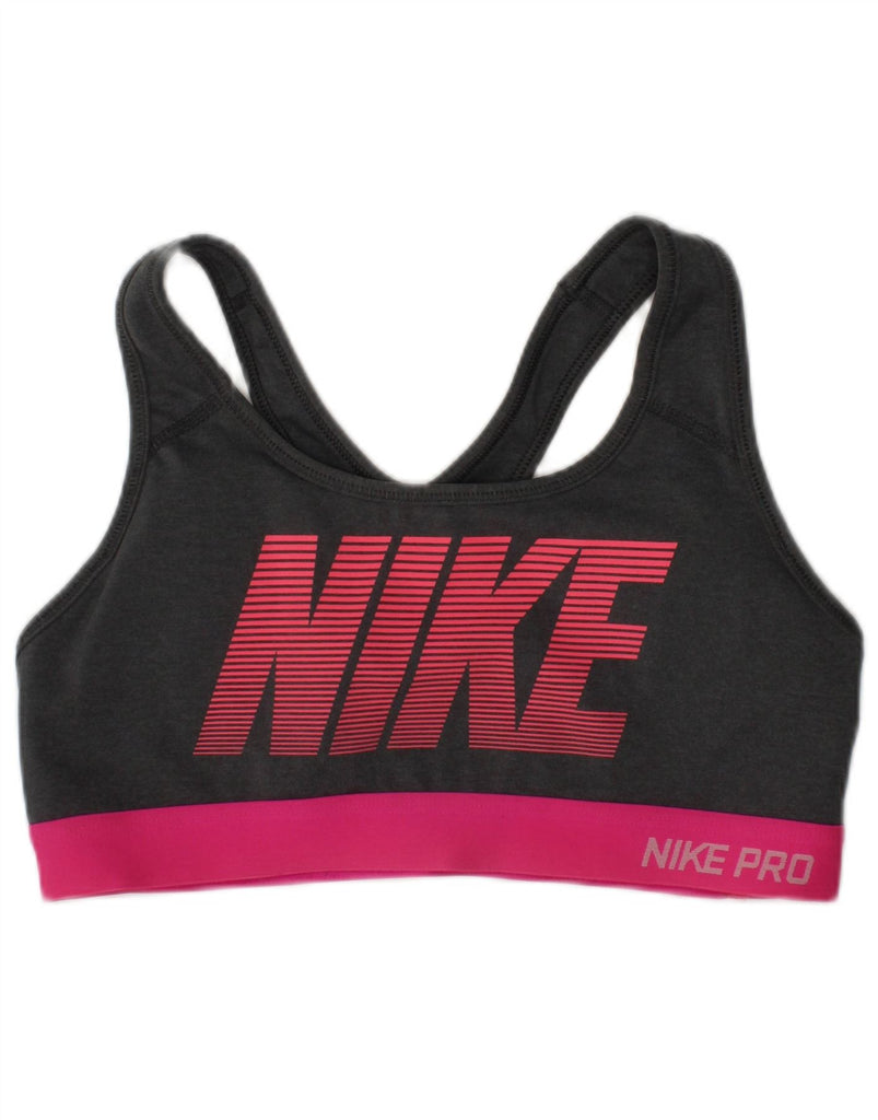 NIKE Womens Dri Fit Sport Bra Graphic Vest Top UK 8 Small Grey Colourblock