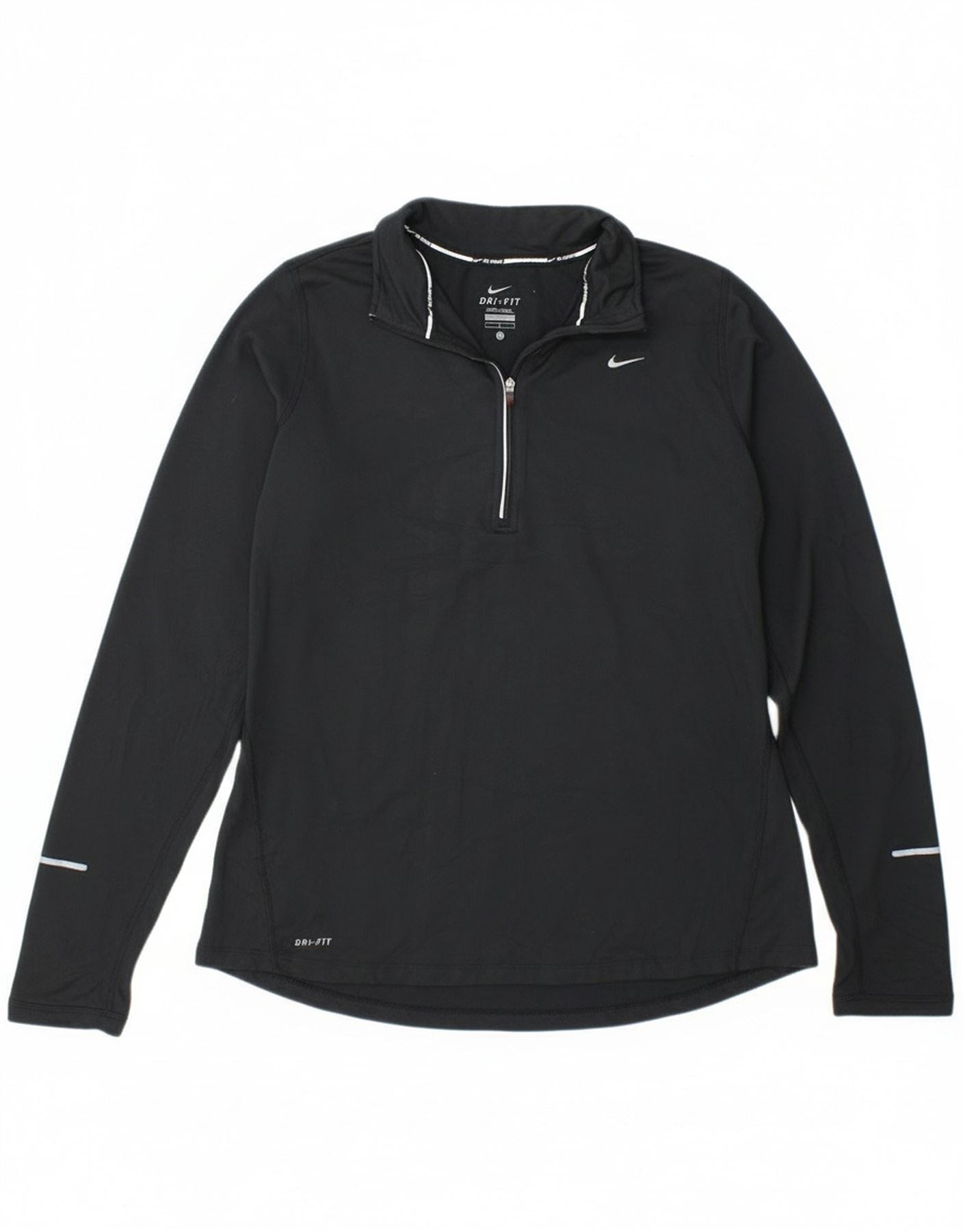 Nike Damen Dri Fit Zip Neck Top Langarm UK 14 Large Schwarz Polyester