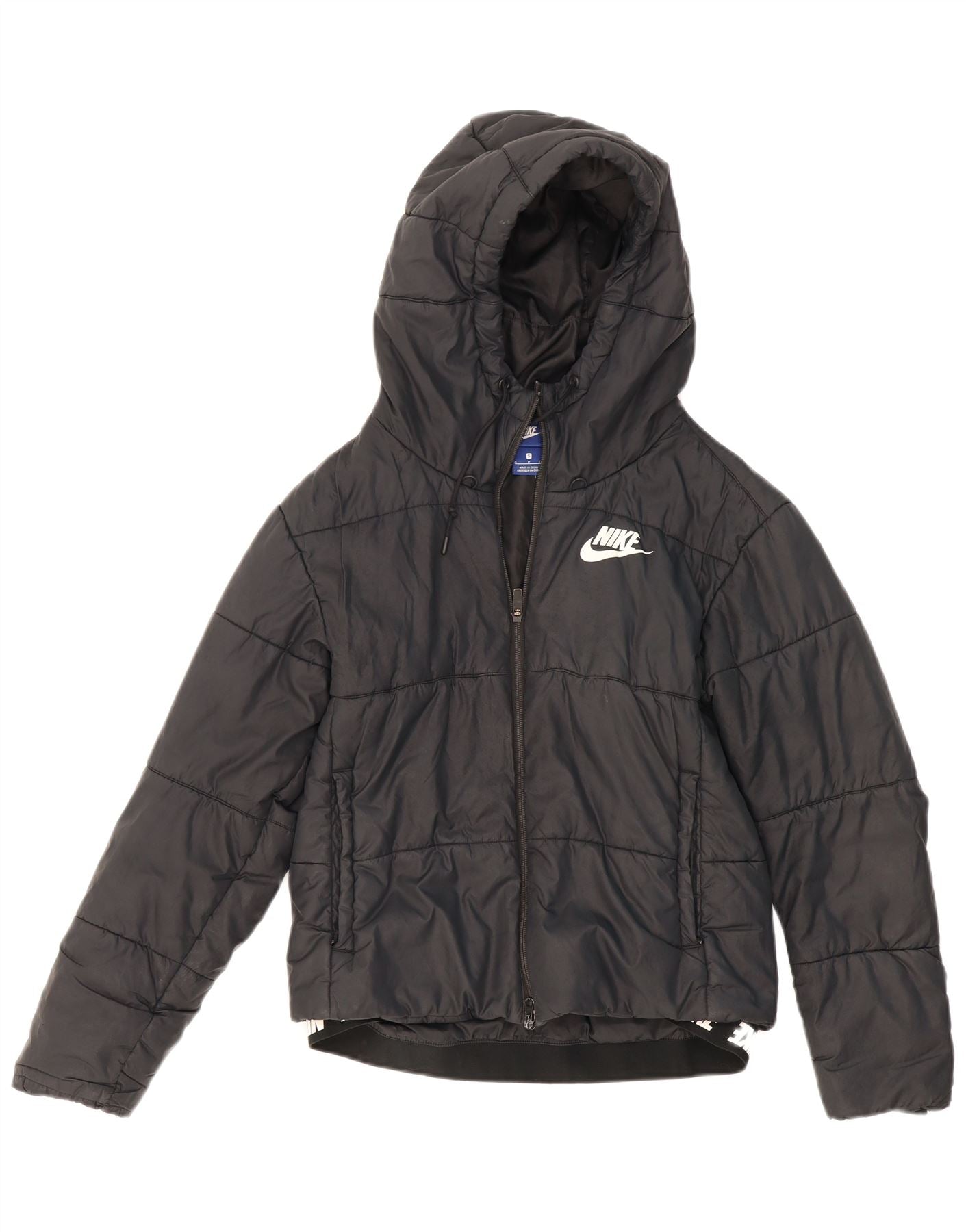 NIKE Womens Graphic Hooded Padded Jacket UK 10 Small Black Polyester