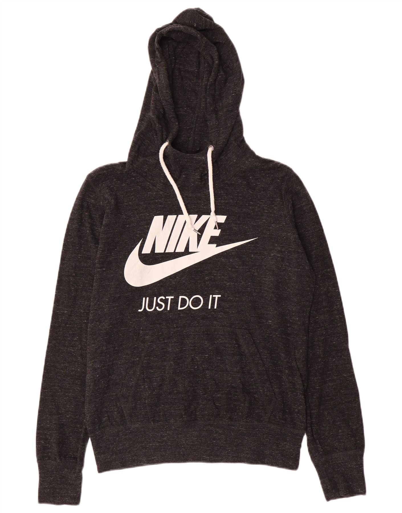 NIKE Womens Graphic Hoodie Pullover UK 14 Mittelgrau gefleckte Baumwolle