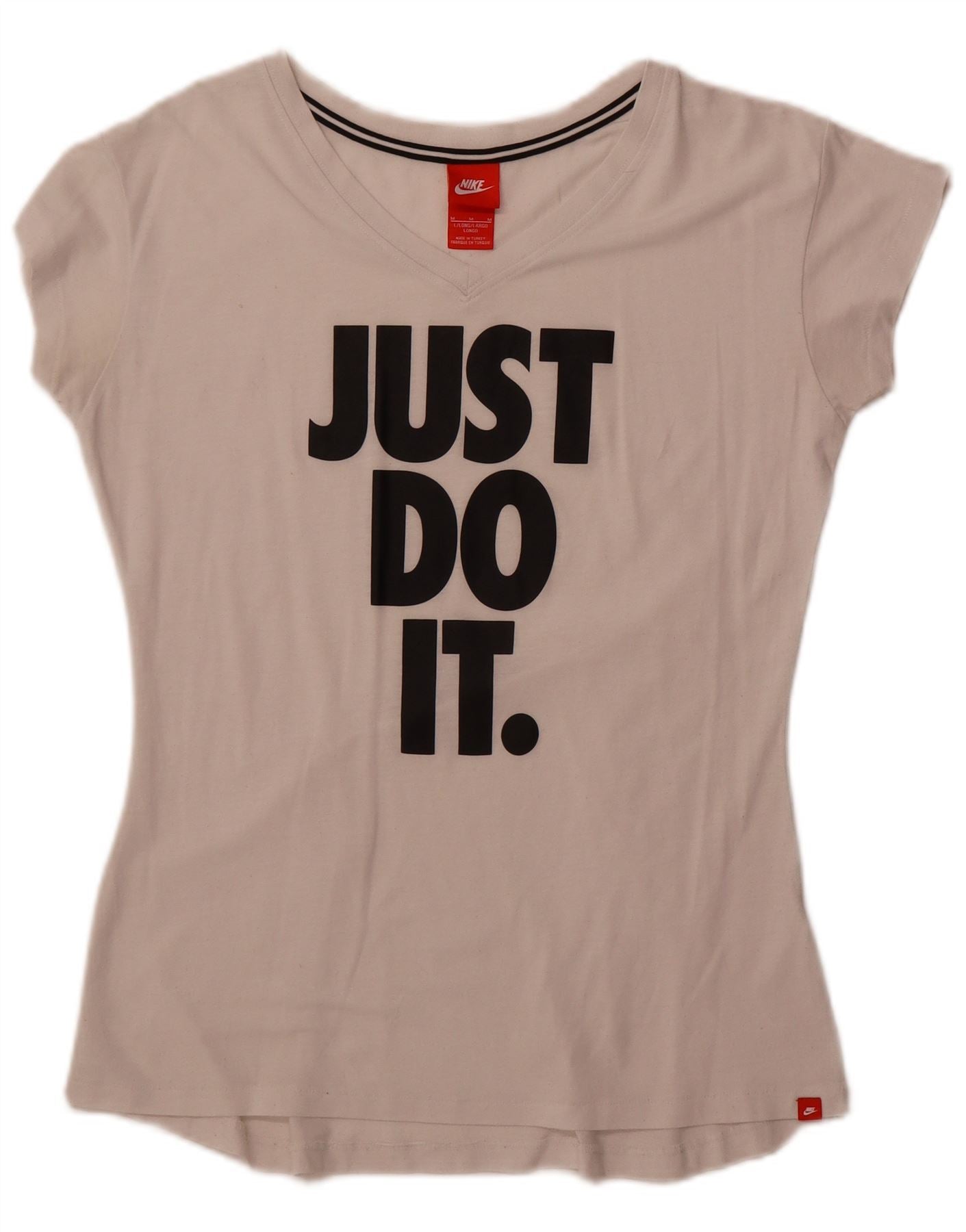 Nike Damen Graphic T-Shirt Top UK 14 Medium Off White