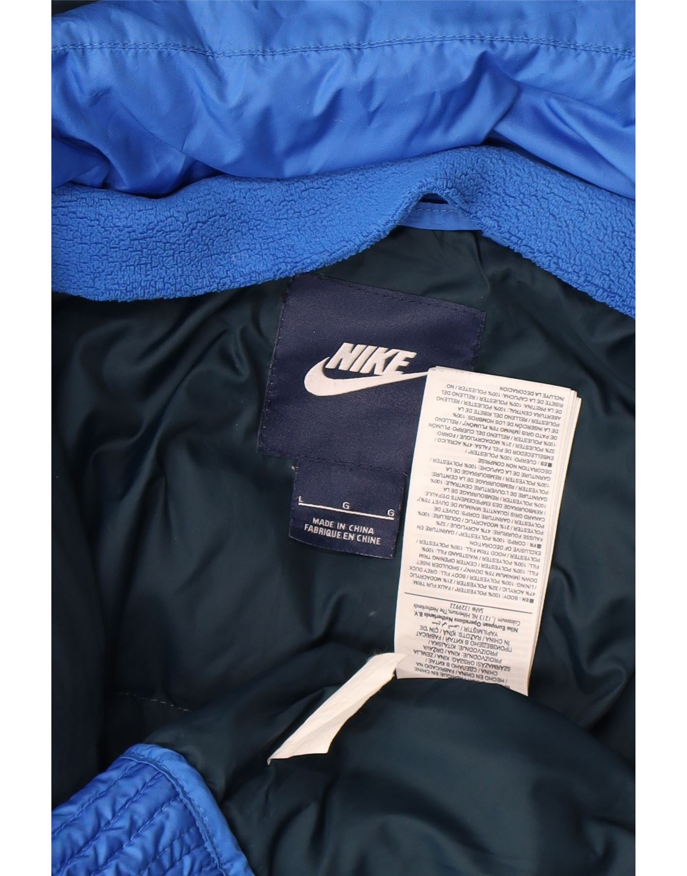 NIKE Womens Hooded Padded Jacket UK 16 Large Blue Colourblock Polyester