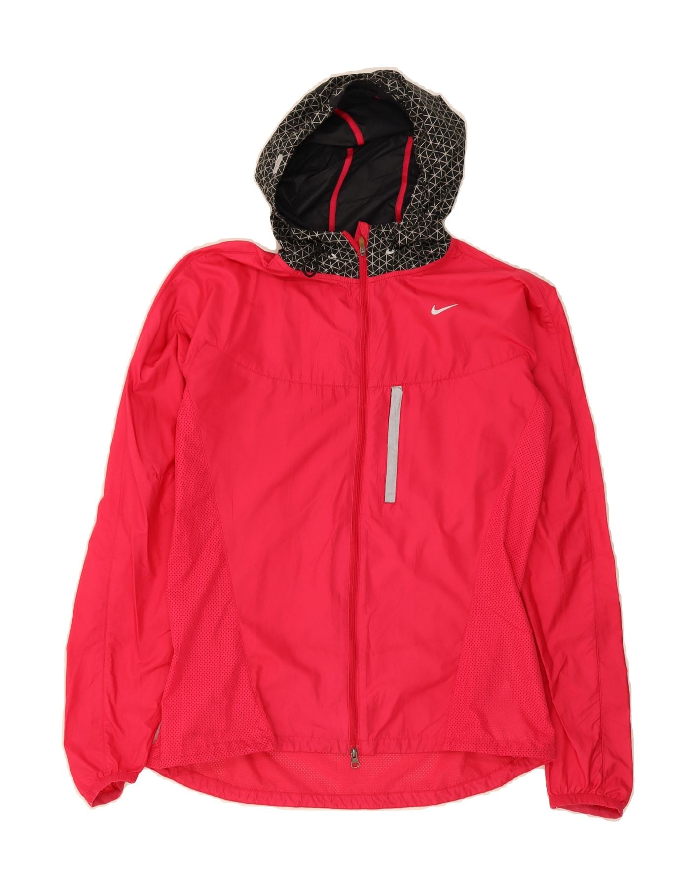 NIKE Womens Hooded Rain Jacket UK 14 Medium Pink Colourblock Polyester