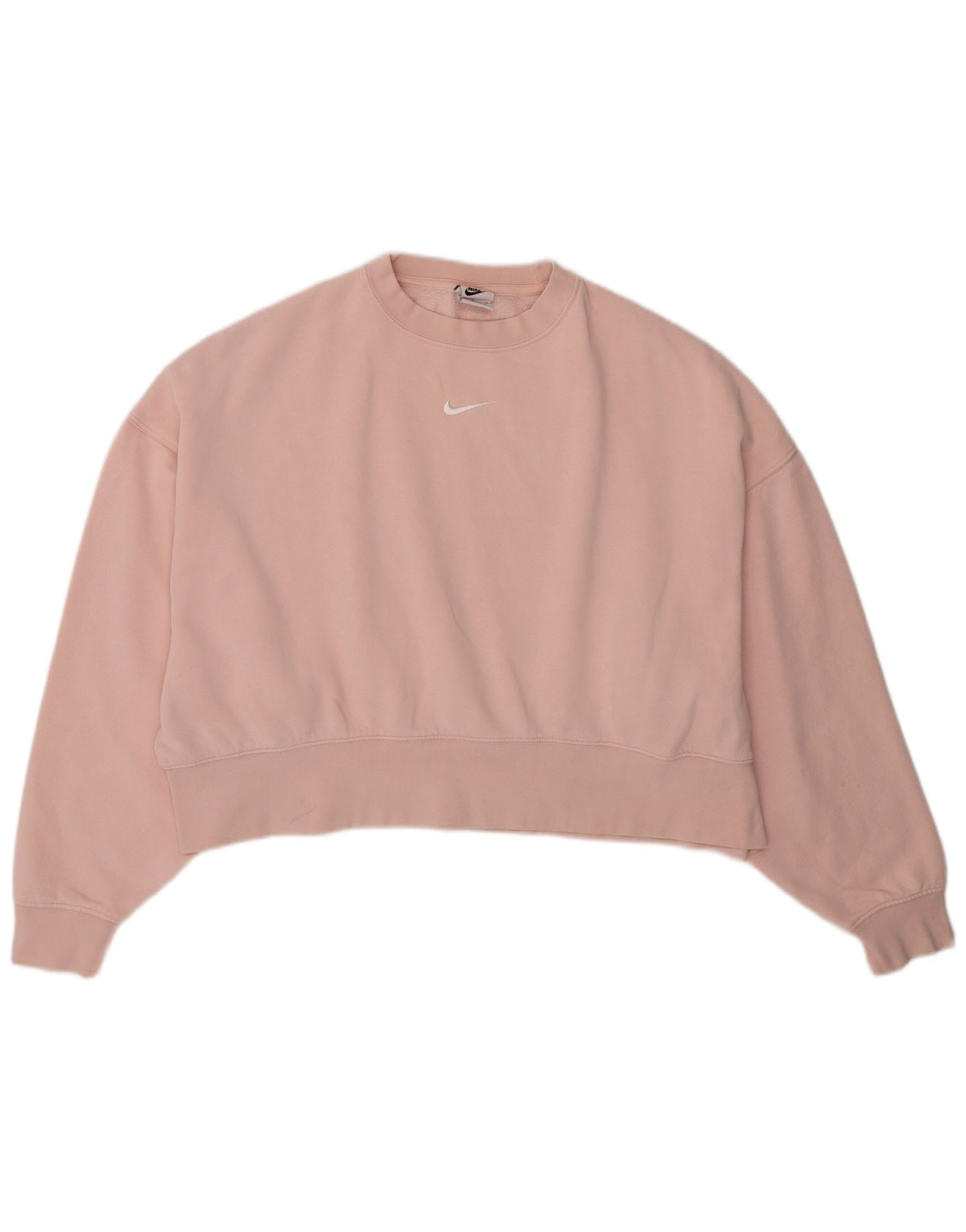NIKE Womens Oversized Crop Sweatshirt Jumper UK 10 Small Pink Cotton