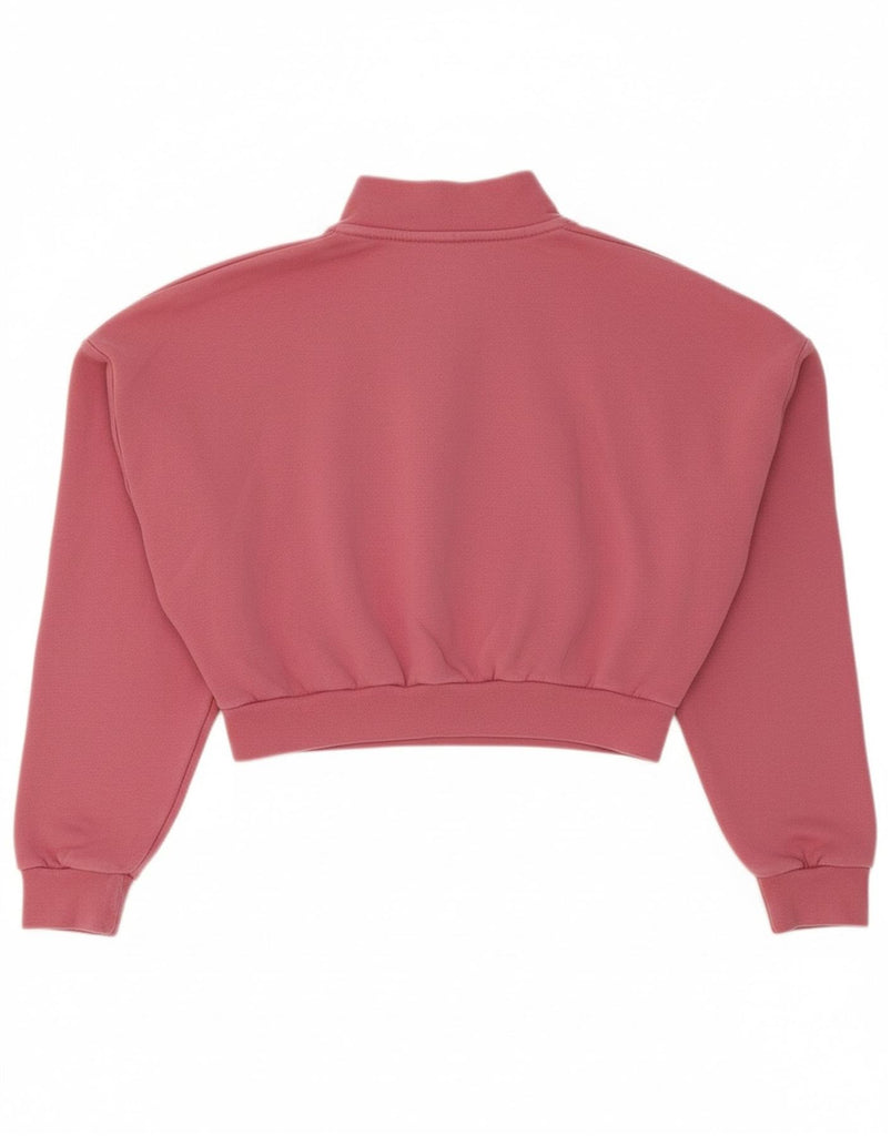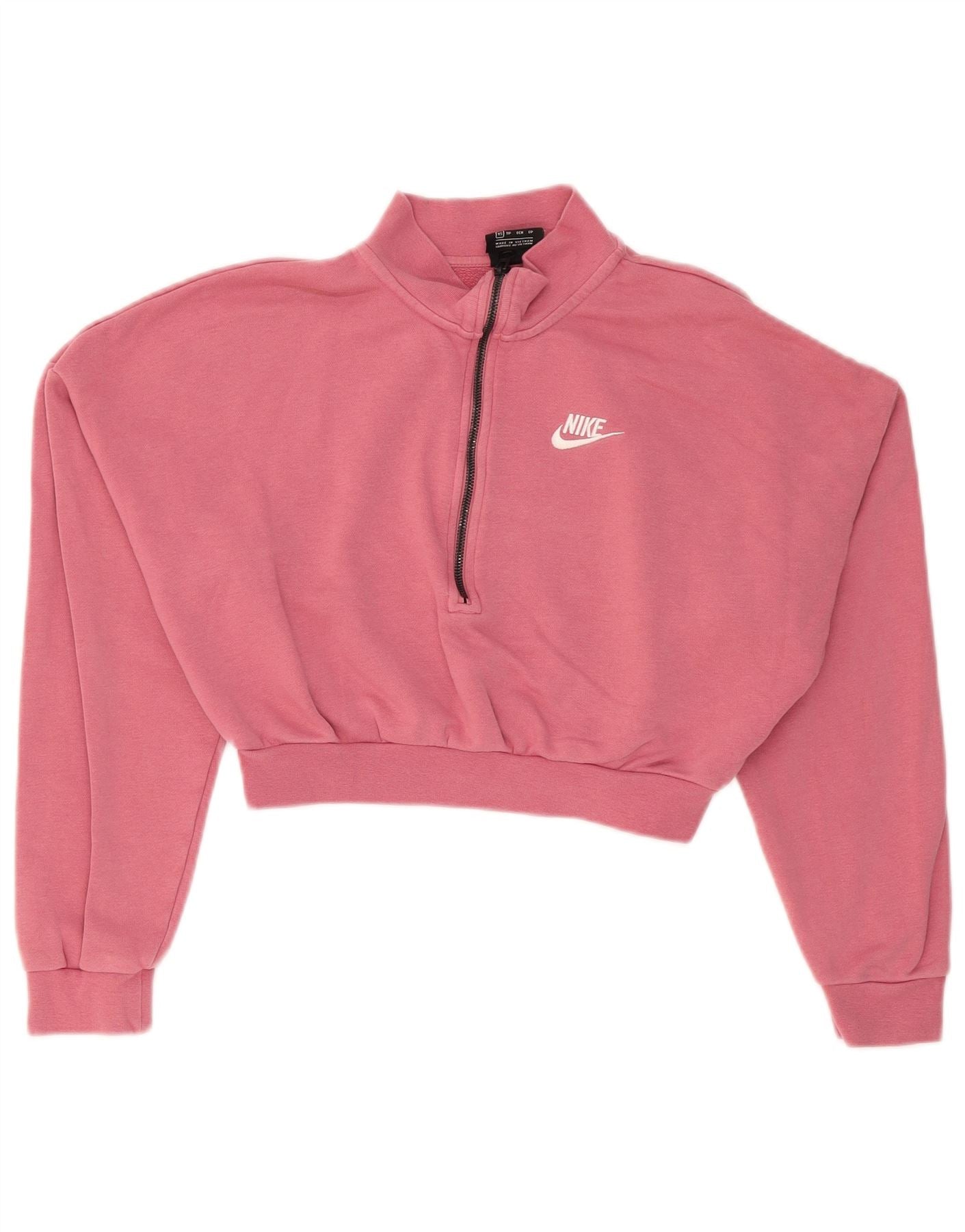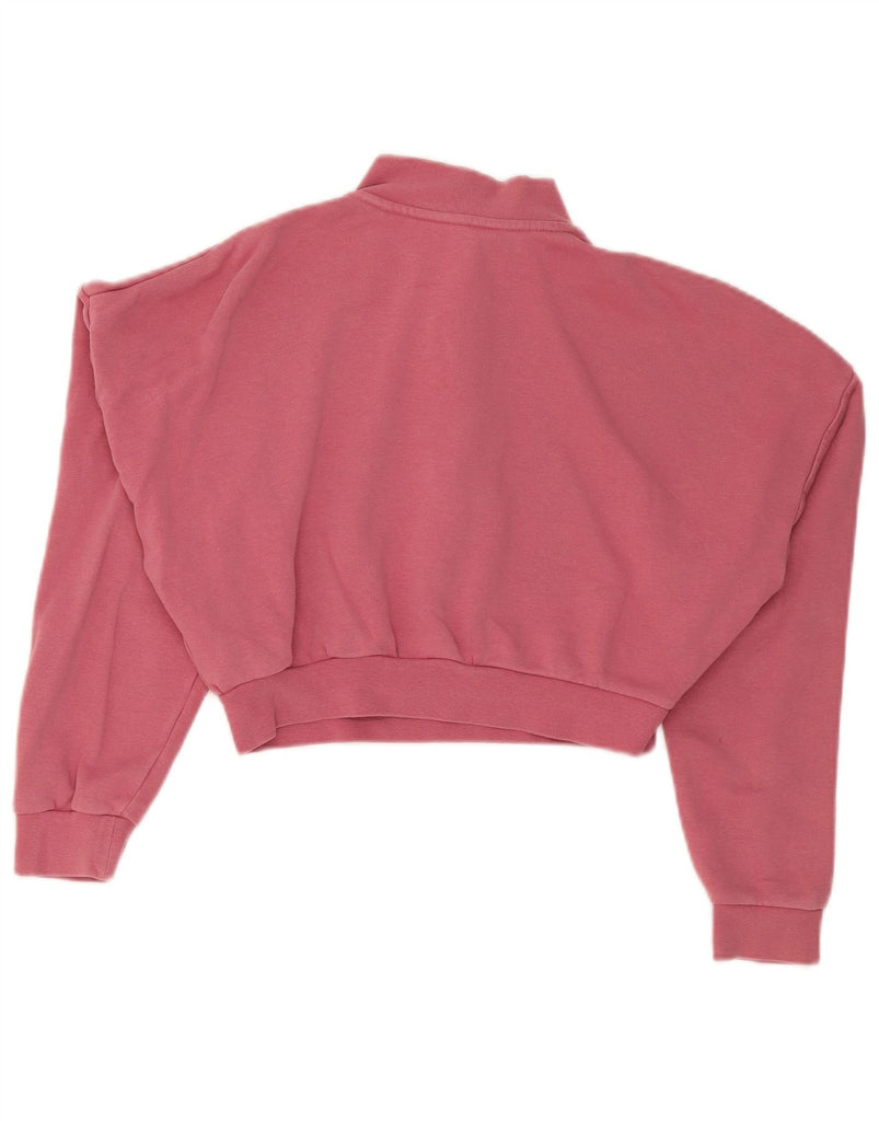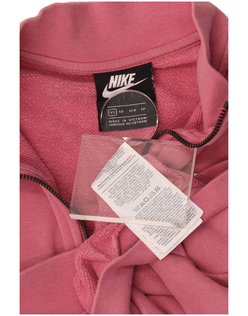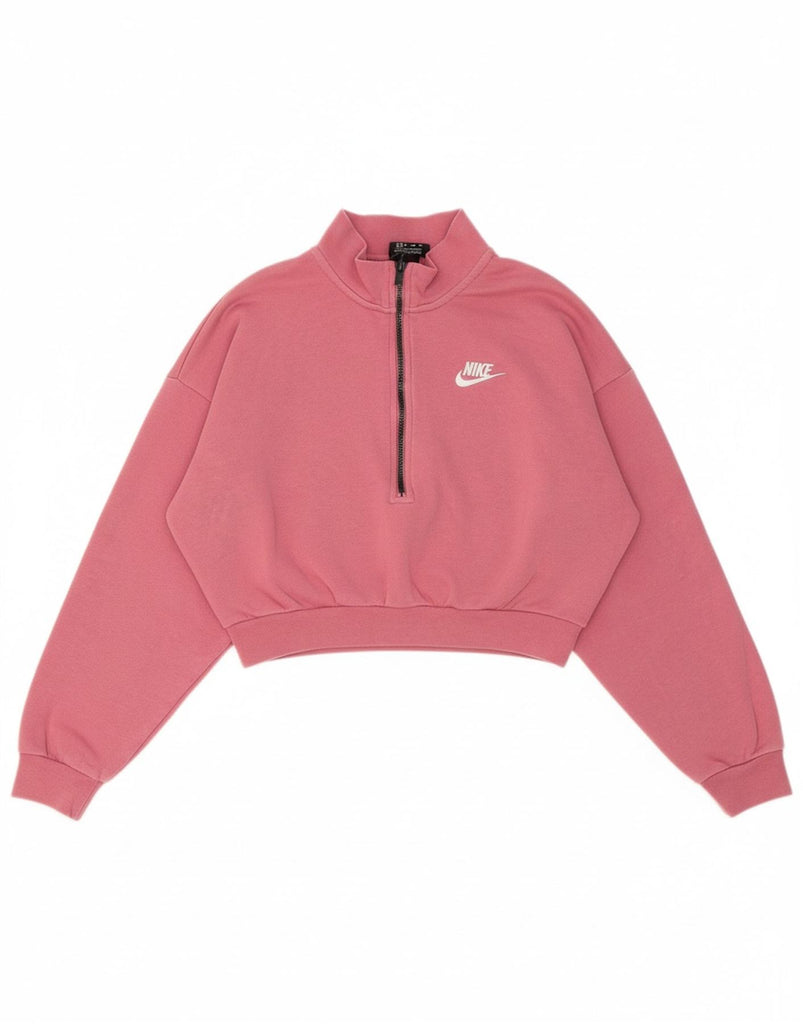 NIKE Womens Oversized Crop Zip Neck Sweatshirt Jumper UK 6 XS Pink Cotton