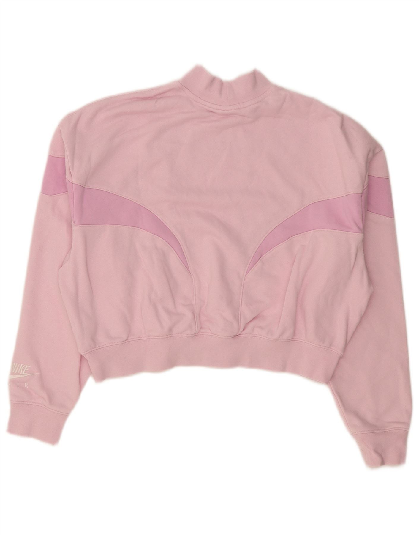 - KI-Beschreibung: Dieser Nike-Sweatshirtpullover für Damen besteht aus einer zartrosa Baumwollmischung und bietet eine bequeme, entspannte Passform. Es verfügt über einen stilvollen Stehkragen und lange Ärmel sowie gerippte Bündchen und Saum für ein gepflegtes Finish. Die verkürzte Länge sorgt für einen modernen Touch. Ein markantes AIR-Logo auf der Vorderseite und ein kleines Nike-Logo auf dem Ärmel sorgen für das charakteristische Branding. Dieses Pullover-Design eignet sich perfekt für Sport- oder Freizeitkleidung.