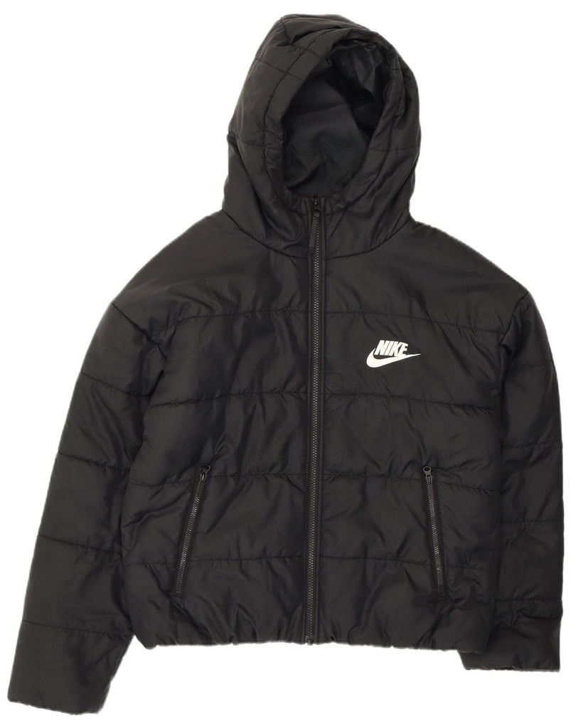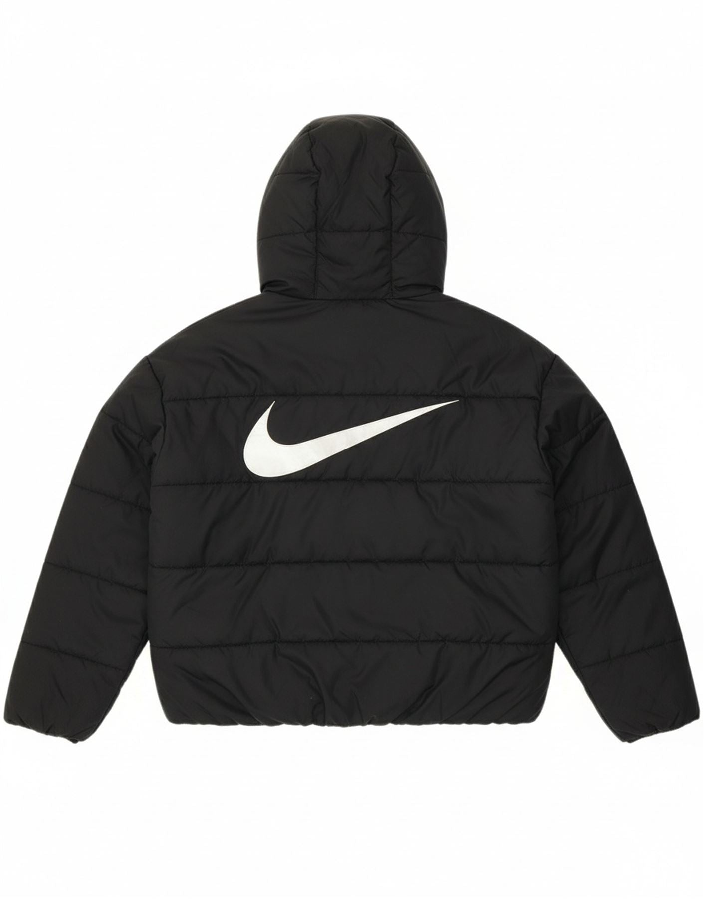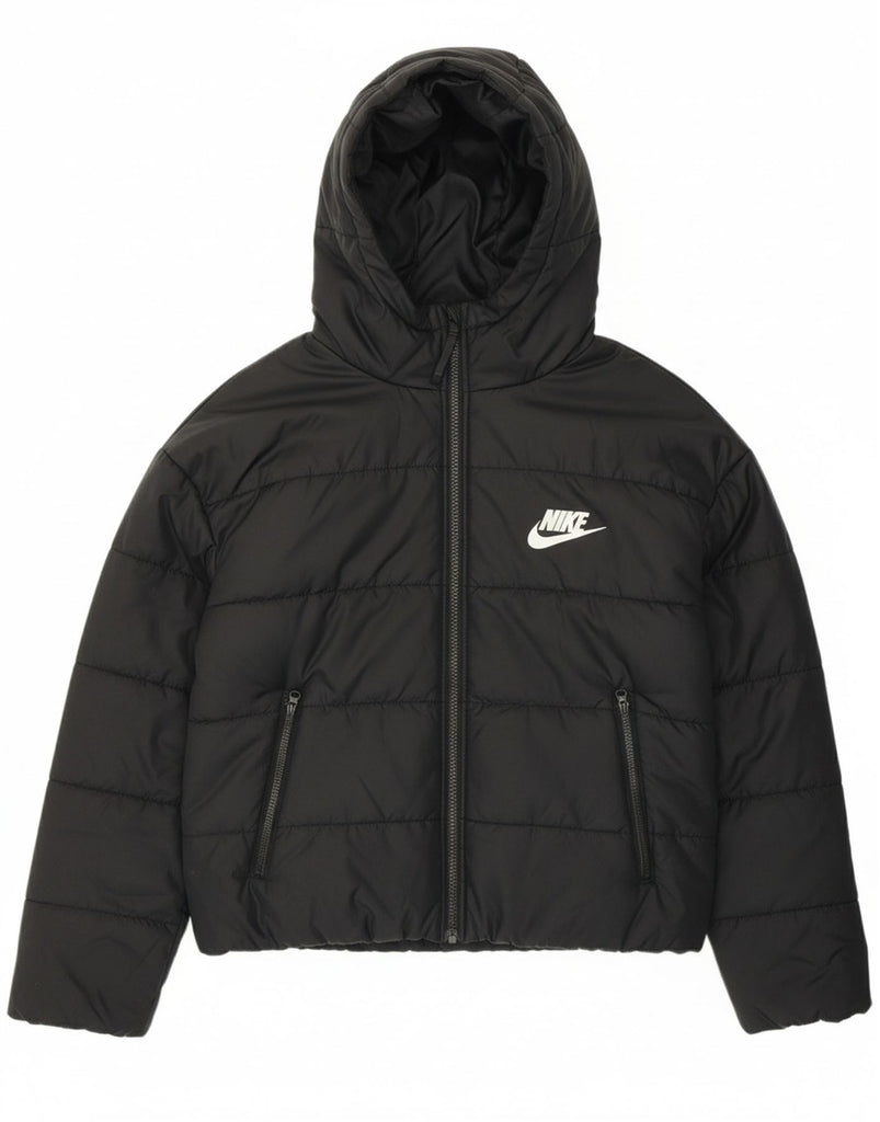 NIKE Womens Oversized Graphic Hooded Padded Jacket UK 10 Small Black