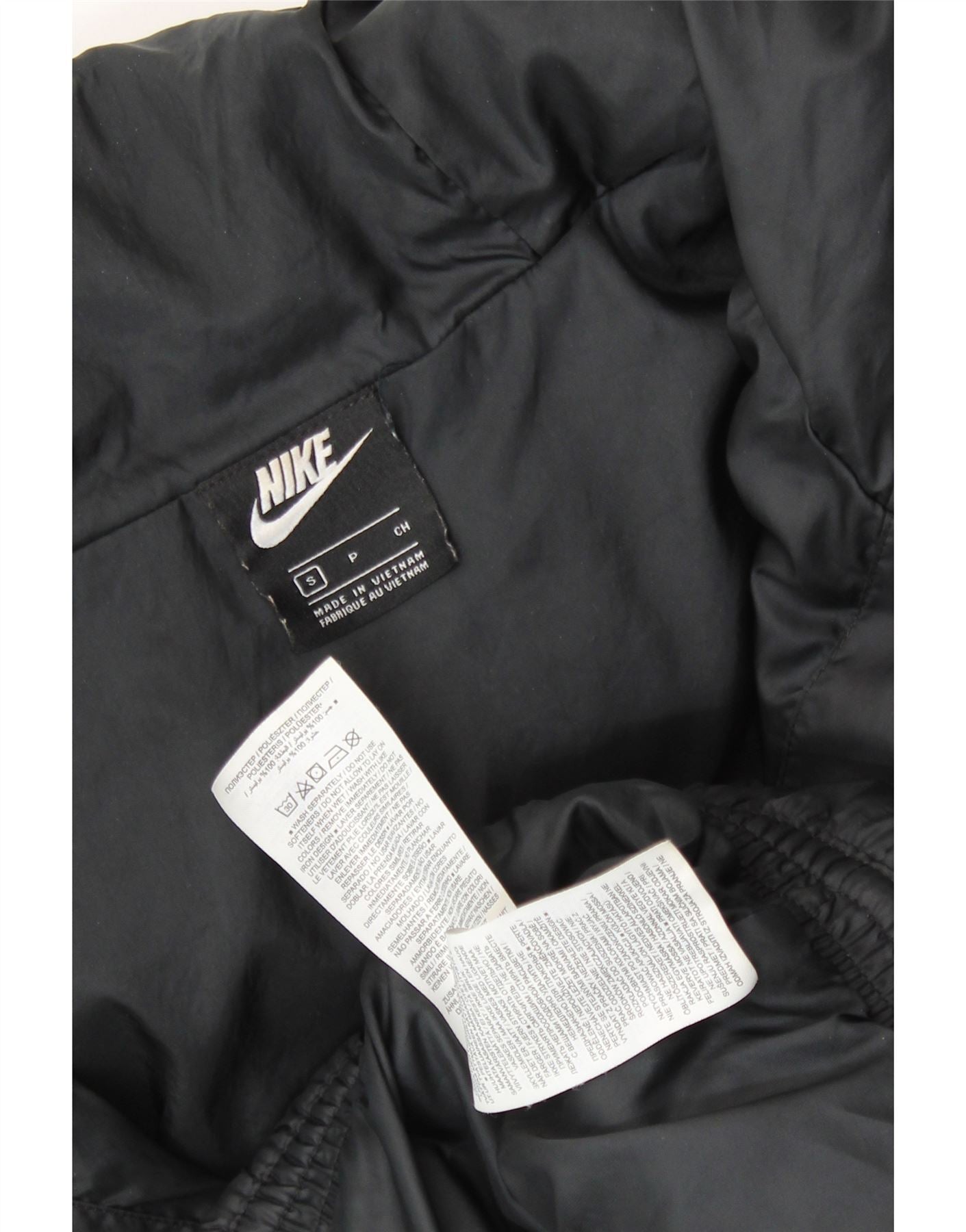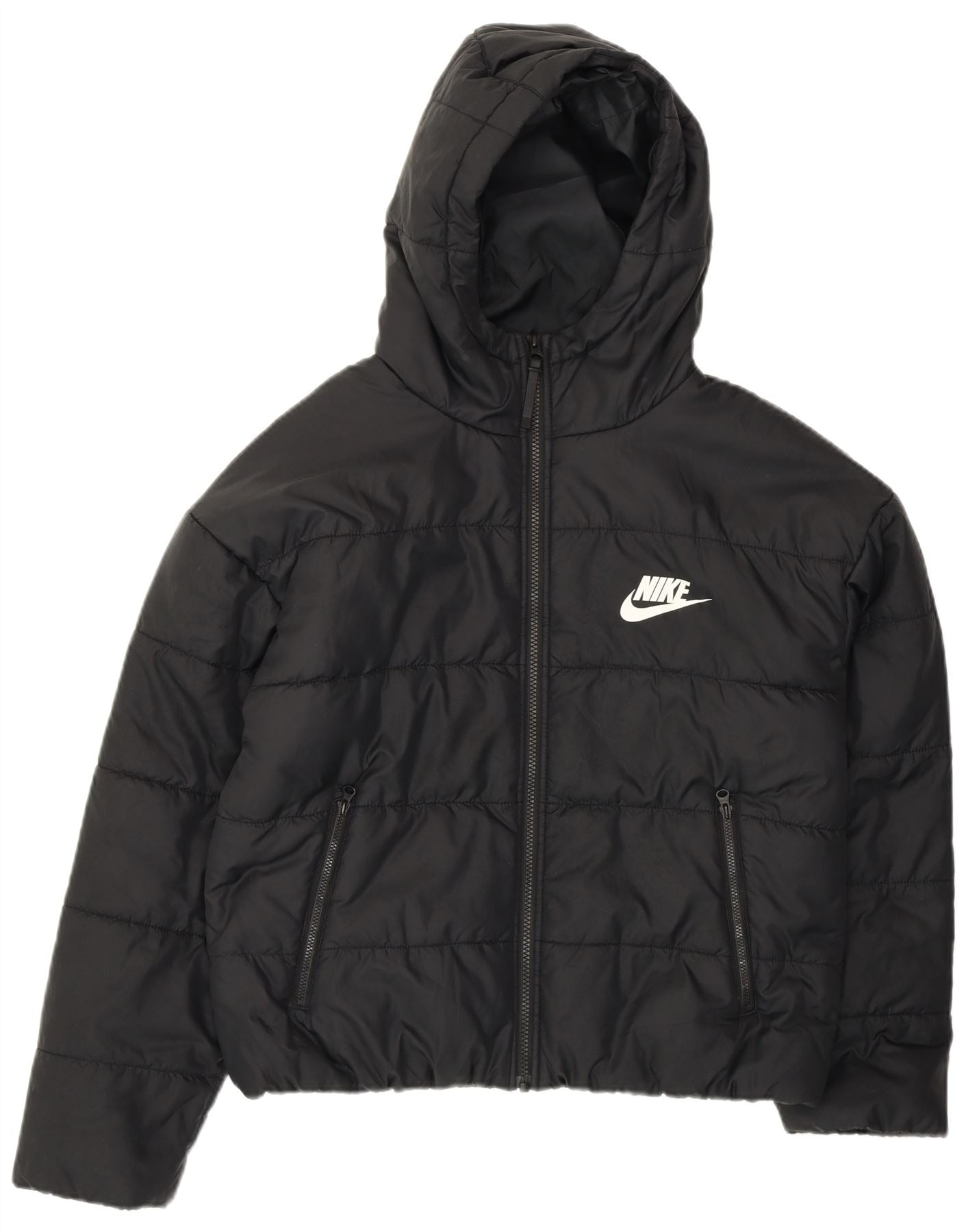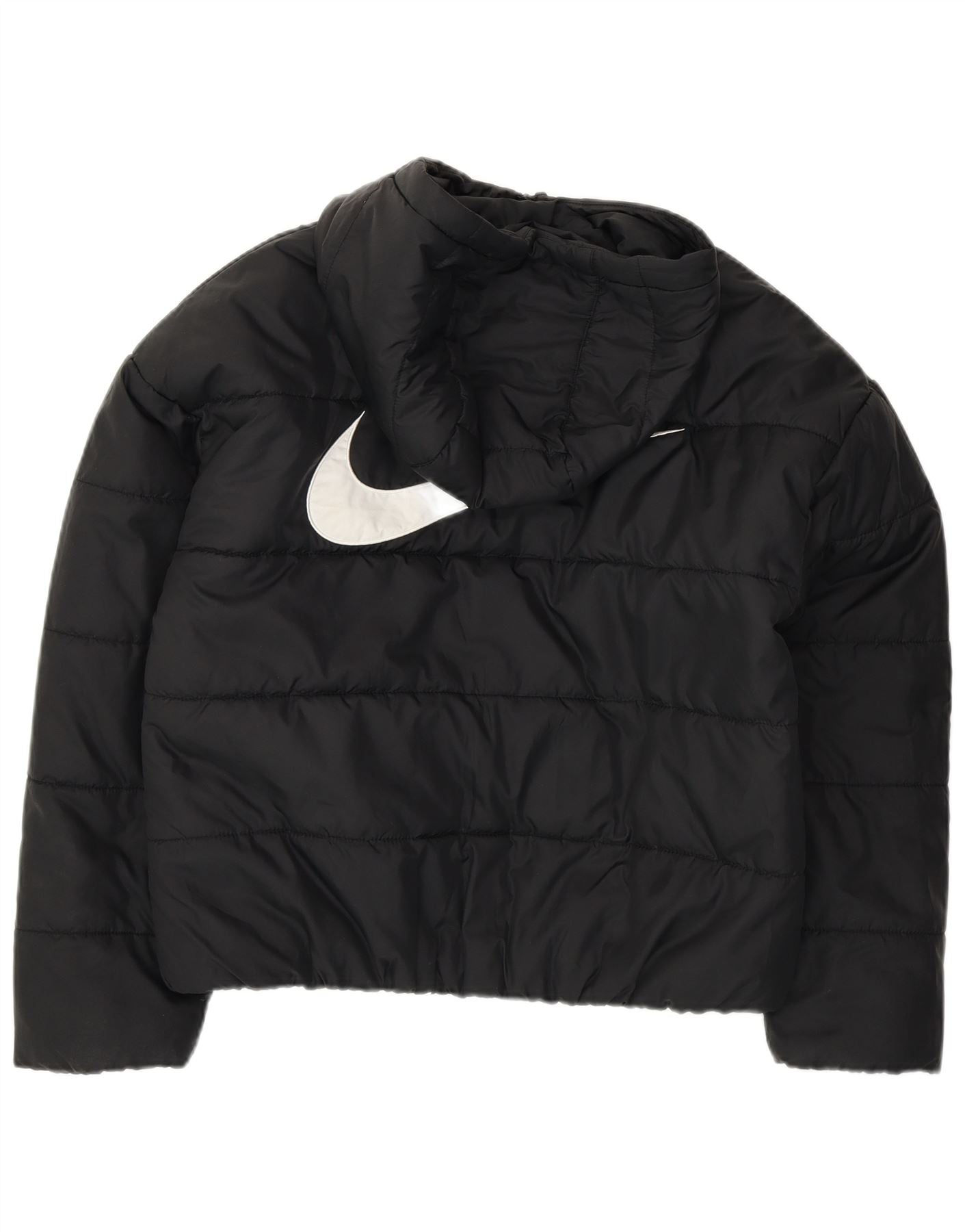 NIKE Womens Oversized Graphic Hooded Padded Jacket UK 10 Small Black