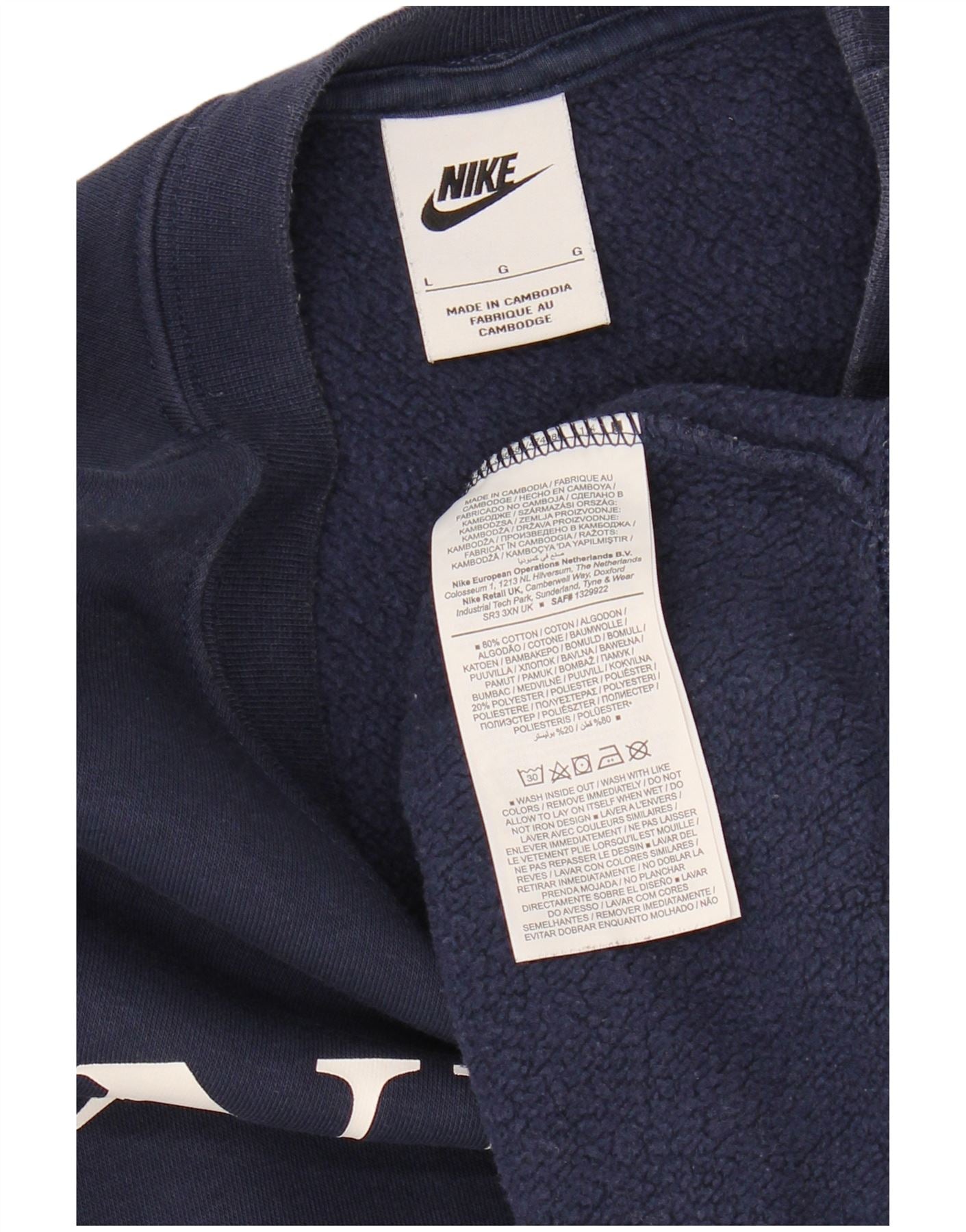 - AI Description: This Nike womens sweatshirt jumper is crafted from a soft navy blue cotton blend fleece fabric. It features a classic round neck and long sleeves. The pullover design offers a relaxed fit. A prominent graphic logo provides a signature sports accent. This comfortable and breathable piece offers stretch for ease of movement.