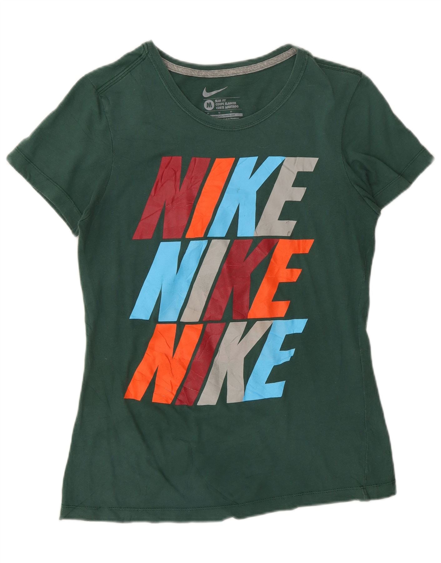 Nike Damen Slim Fit Graphic T-Shirt Top UK 12 Mittelgrüne Baumwolle