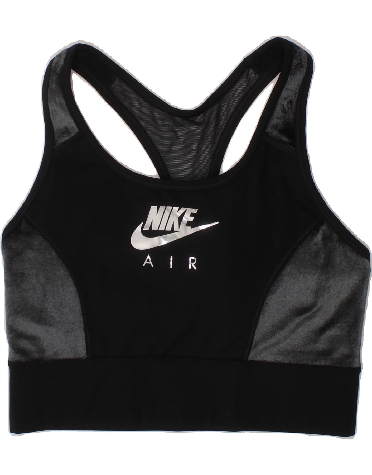 - AI Description: This pre-owned Nike women's graphic vest top is perfect for sports activities. In excellent condition, this black blended fabric top features a built-in sport bra with padding, offering both support and comfort. The regular fit ensures ease of movement, while the breathable and stretchy material enhances performance. Accented with a logo, this pullover style top, size M, is ideal for any workout.