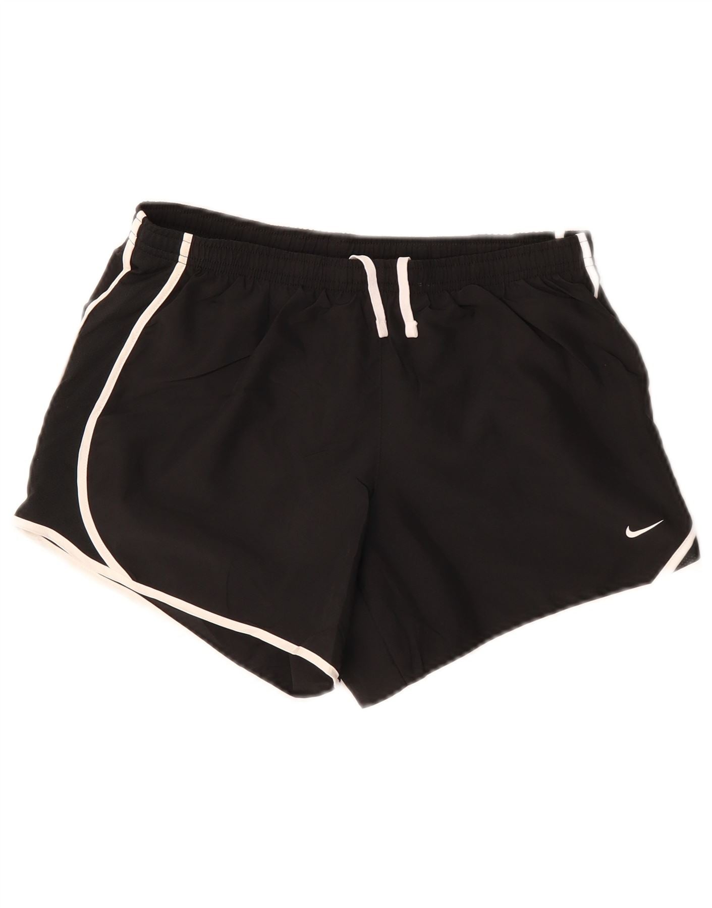 - KI-Beschreibung: Diese Nike-Damenshorts sind aus leichtem schwarzem Polyester gefertigt und eignen sich ideal zum Laufen. Der Pull-on-Stil verfügt über einen elastischen Bund für eine sichere, bequeme Passform. Weiße Paspeln zieren den geschwungenen Saum und sorgen für einen klassischen, sportlichen Touch. Am Bein ist ein dezentes Nike-Logo angebracht. Die normale Passform und das atmungsaktive Material sorgen für Komfort beim Sport.