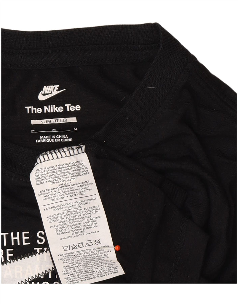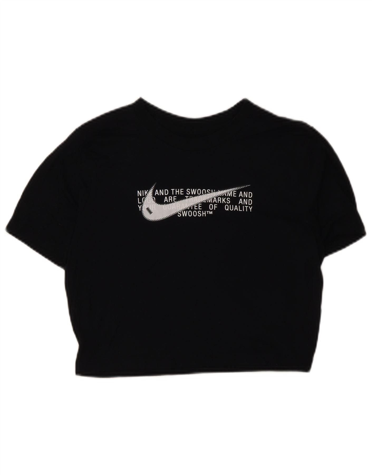 NIKE Womens Swoosh Slim Fit Crop Graphic T-Shirt Top UK 12 Medium Black
