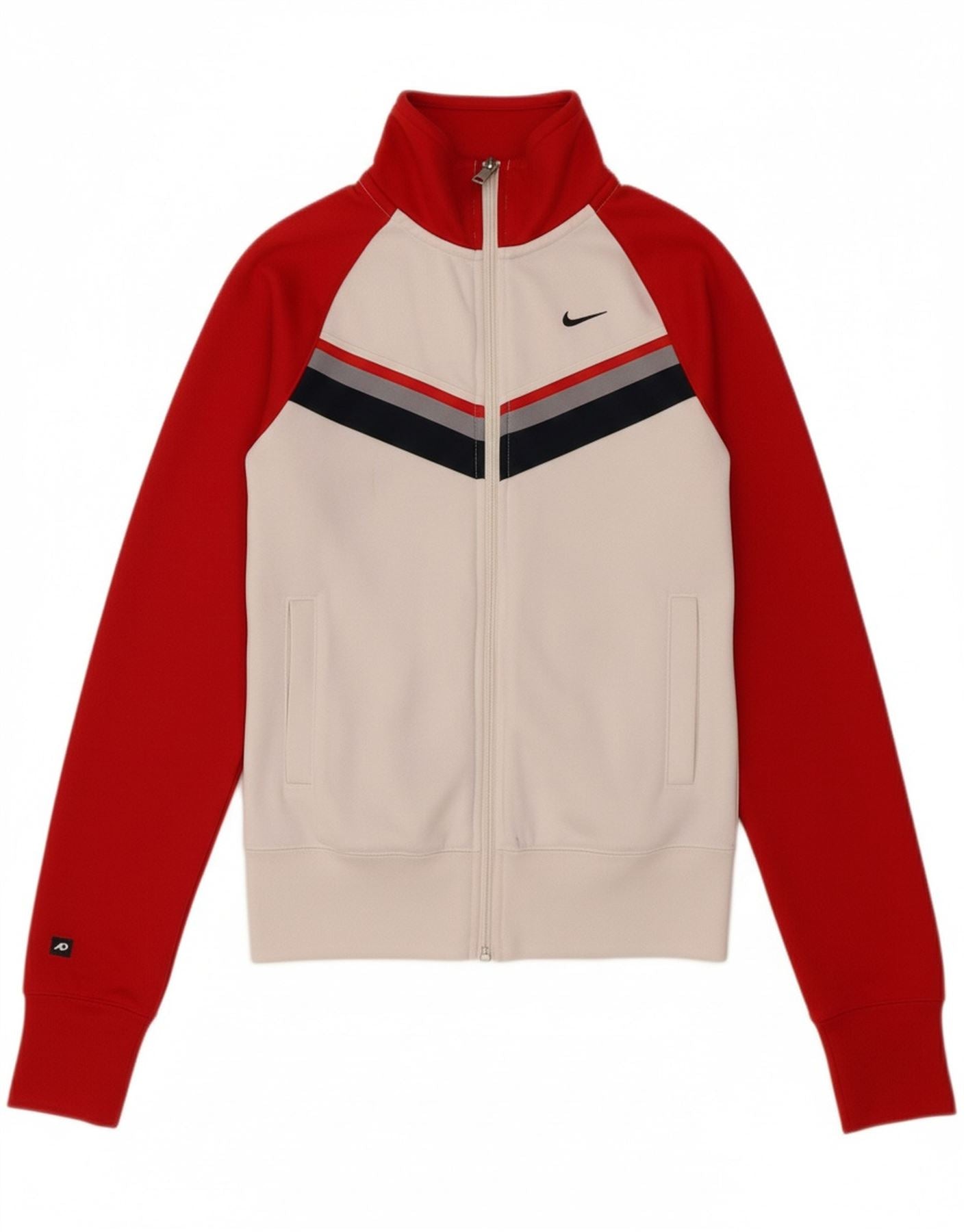 NIKE Womens Tracksuit Top Jacket UK 6 XS White Colourblock Polyester