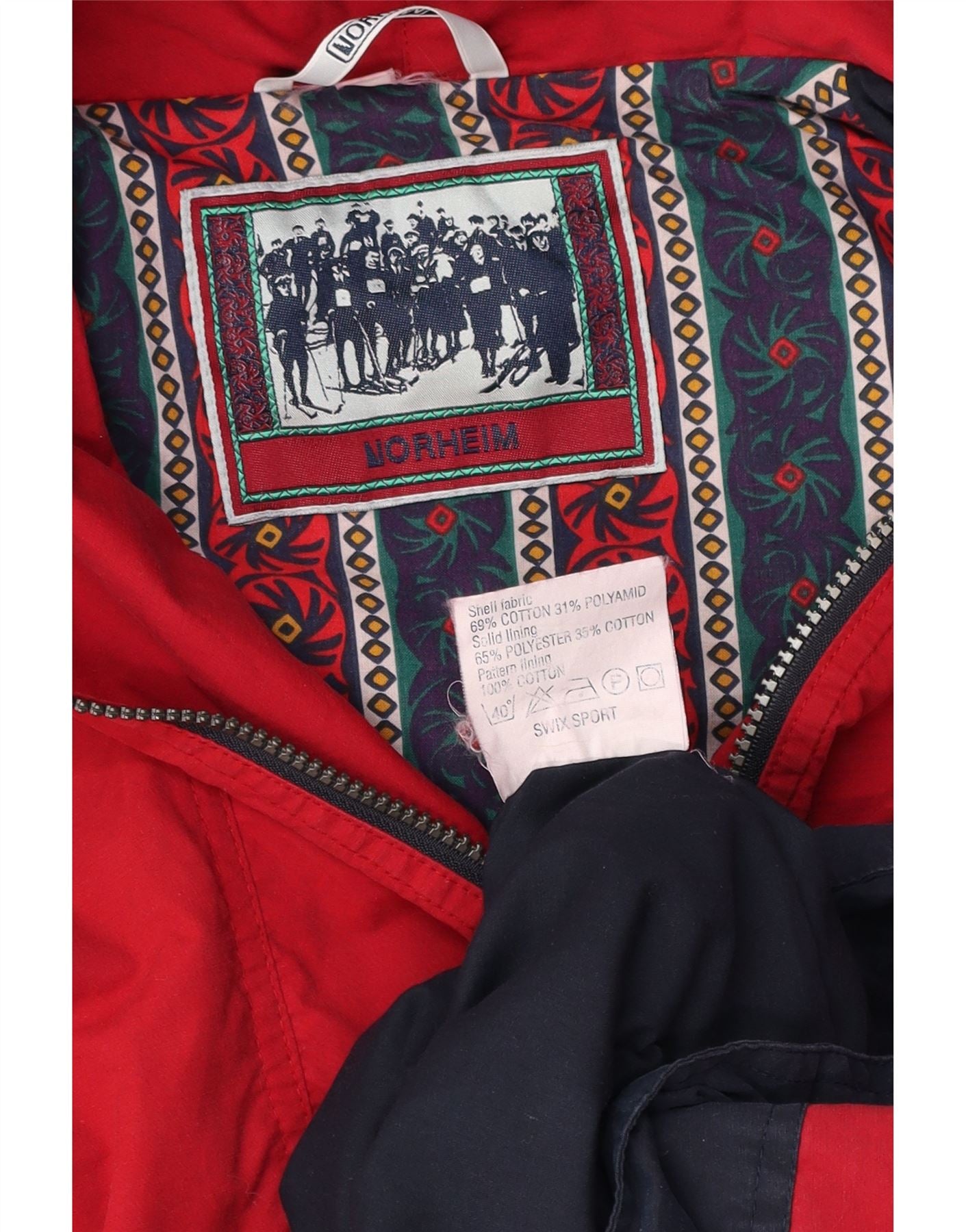 NORHEIM Herren-Anorakjacke mit Kapuze, UK 40, große rote Colourblock-Baumwolle