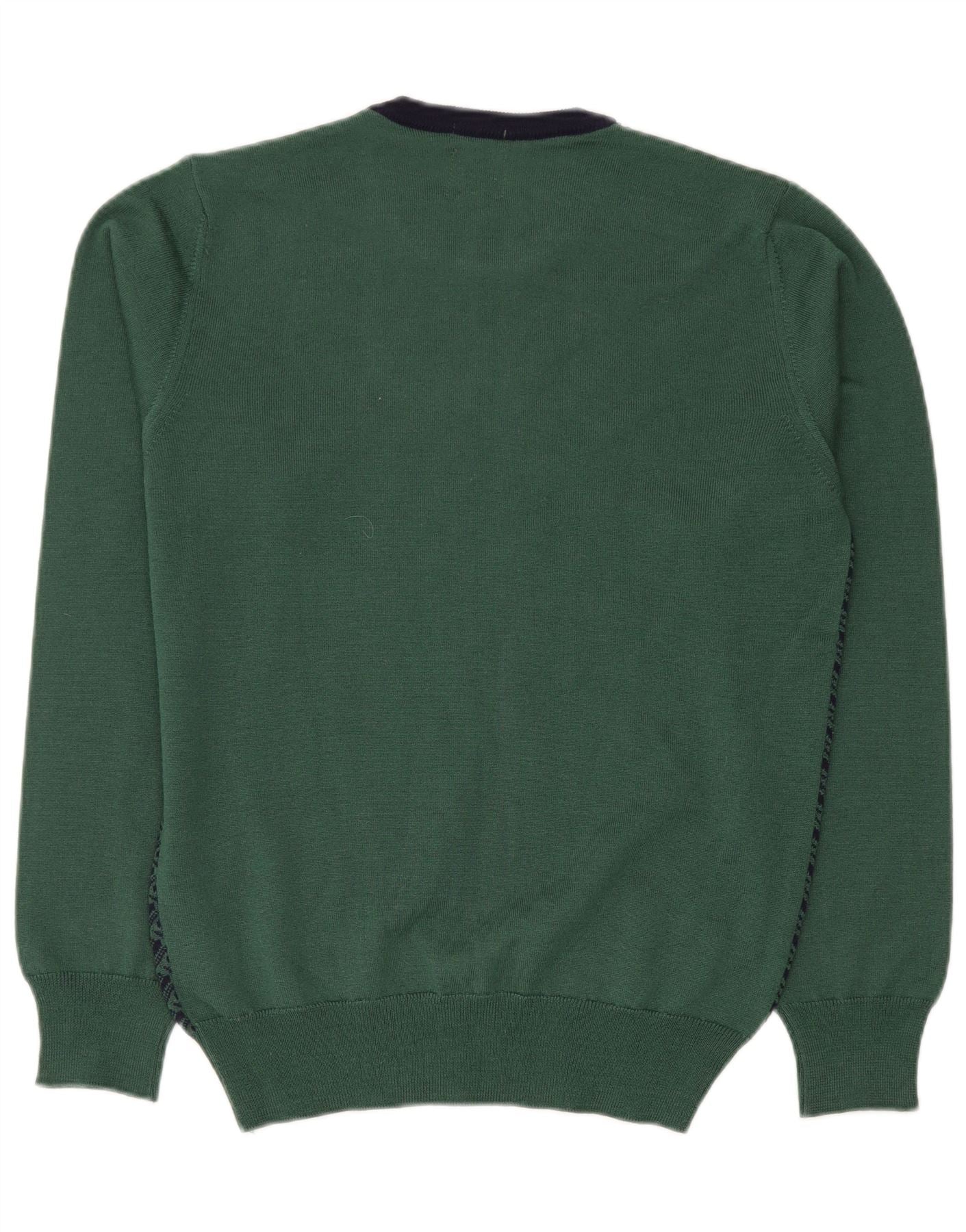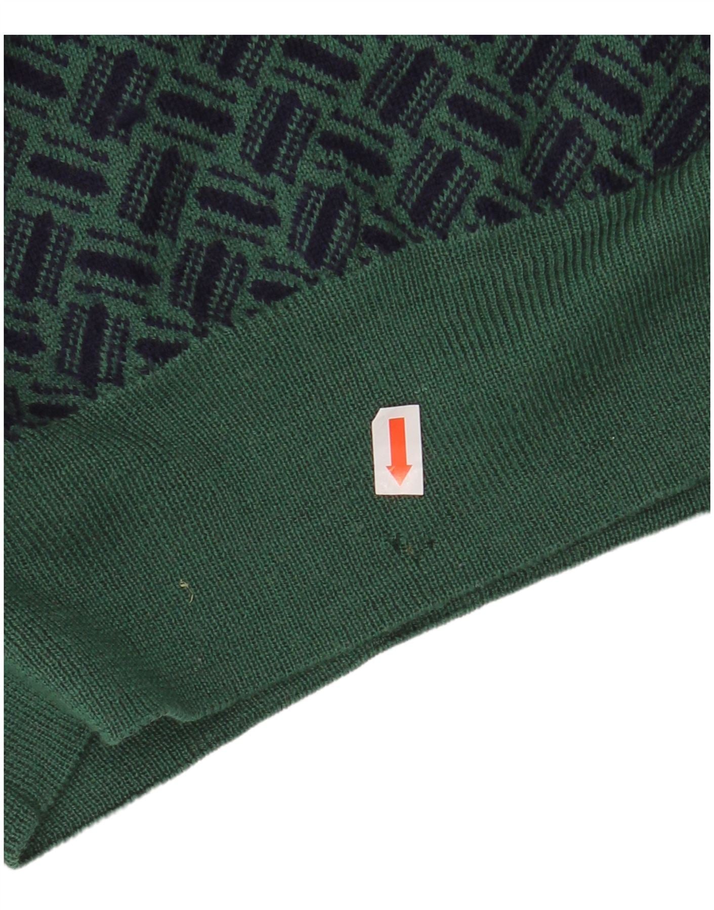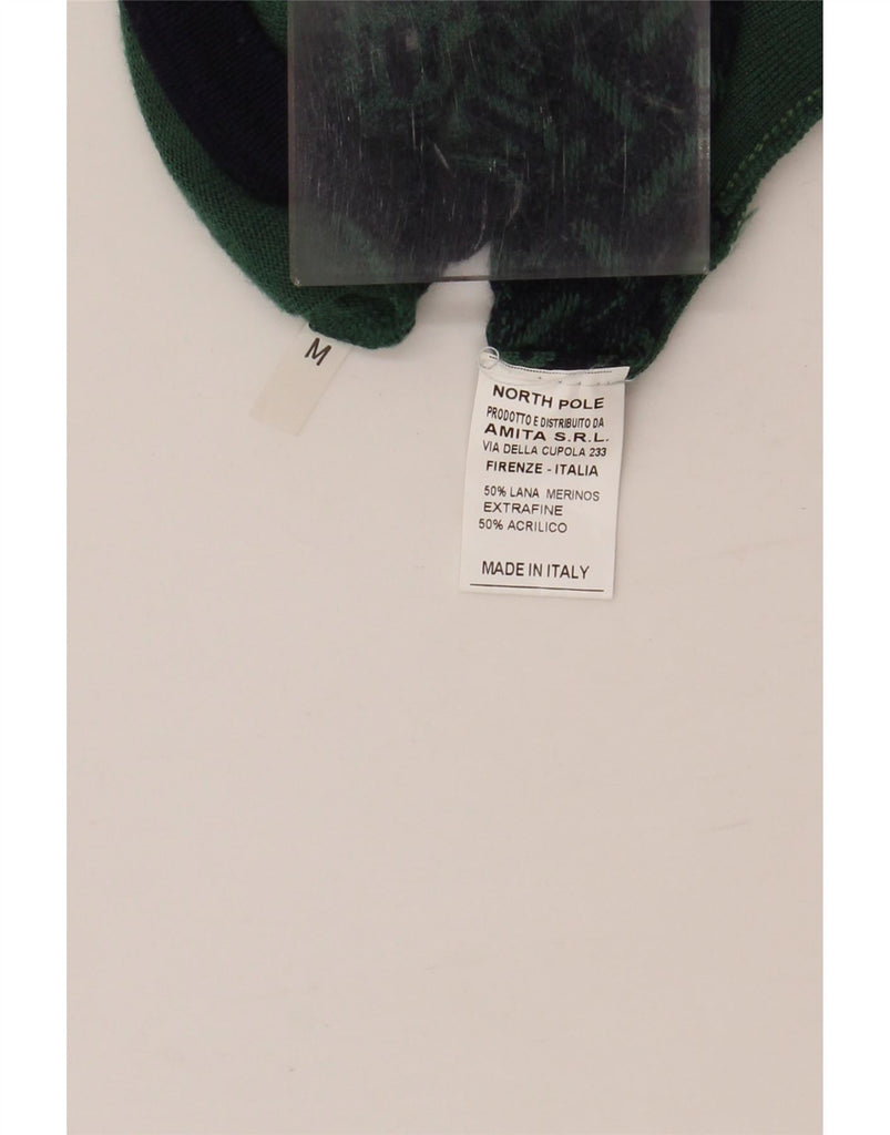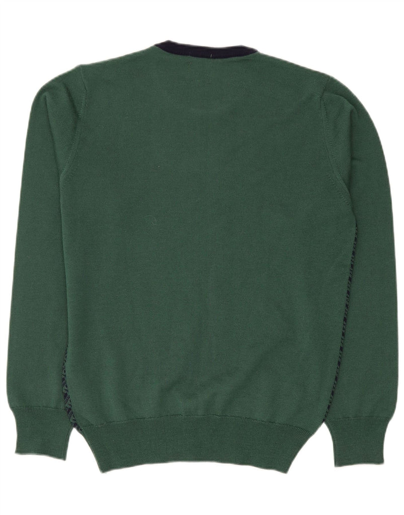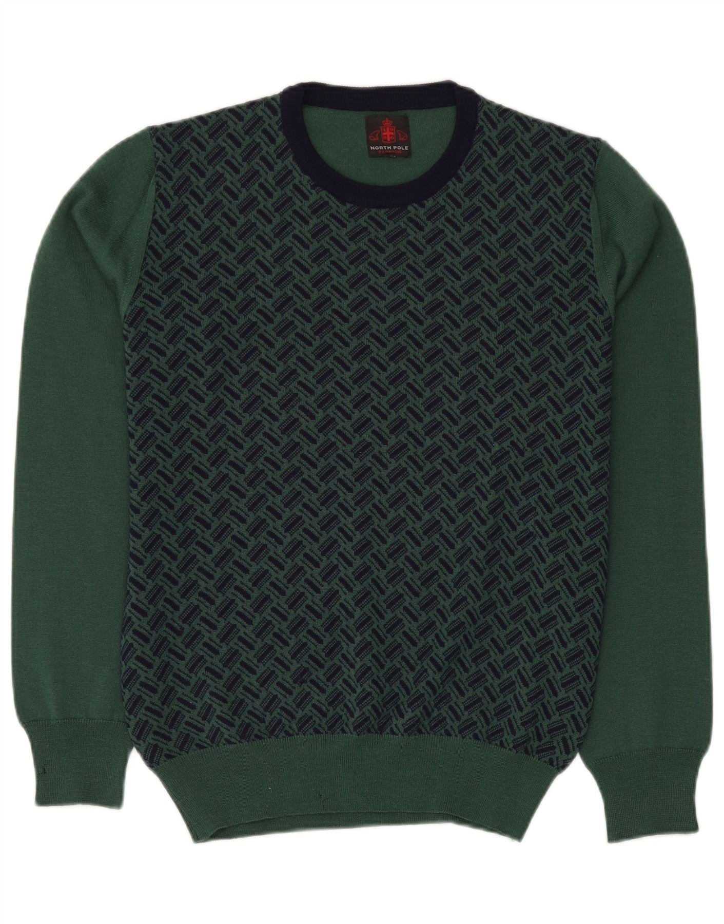 NORTH POLE Herren-Pullover mit Rundhalsausschnitt, mittelgrüne geometrische Wolle