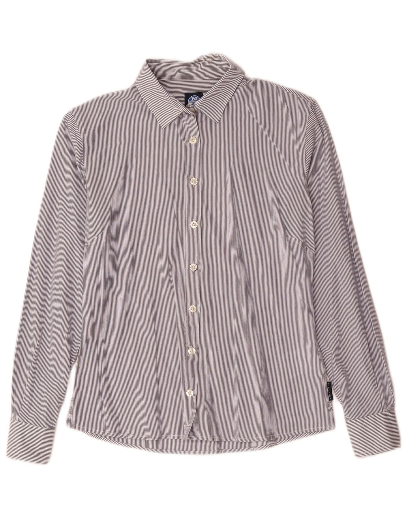 North Sails Damenhemd UK 10 Small Blaue Nadelstreifen-Baumwolle