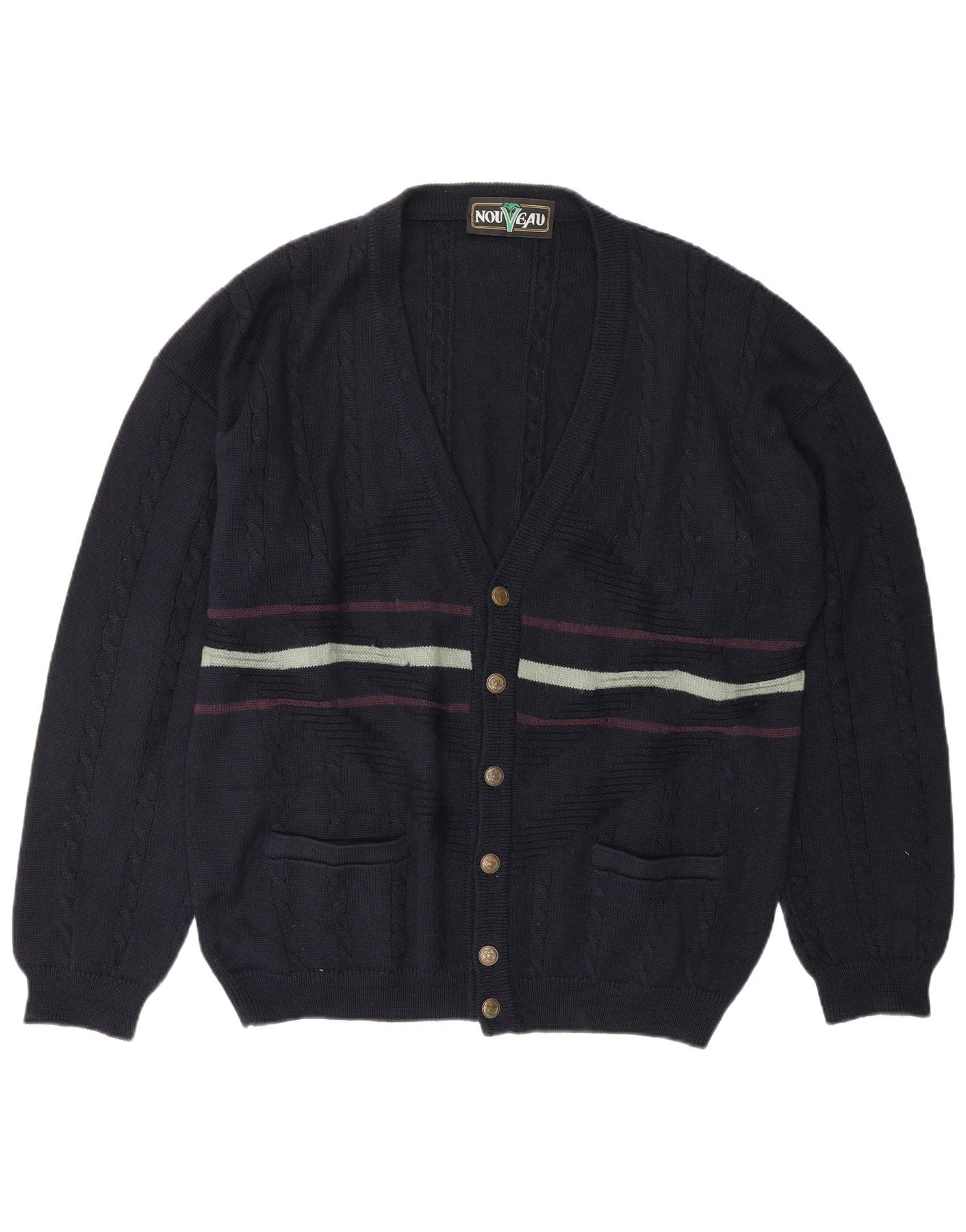 NOUVEAU Herren Strickjacke XL Marineblau gestreifte Wolle