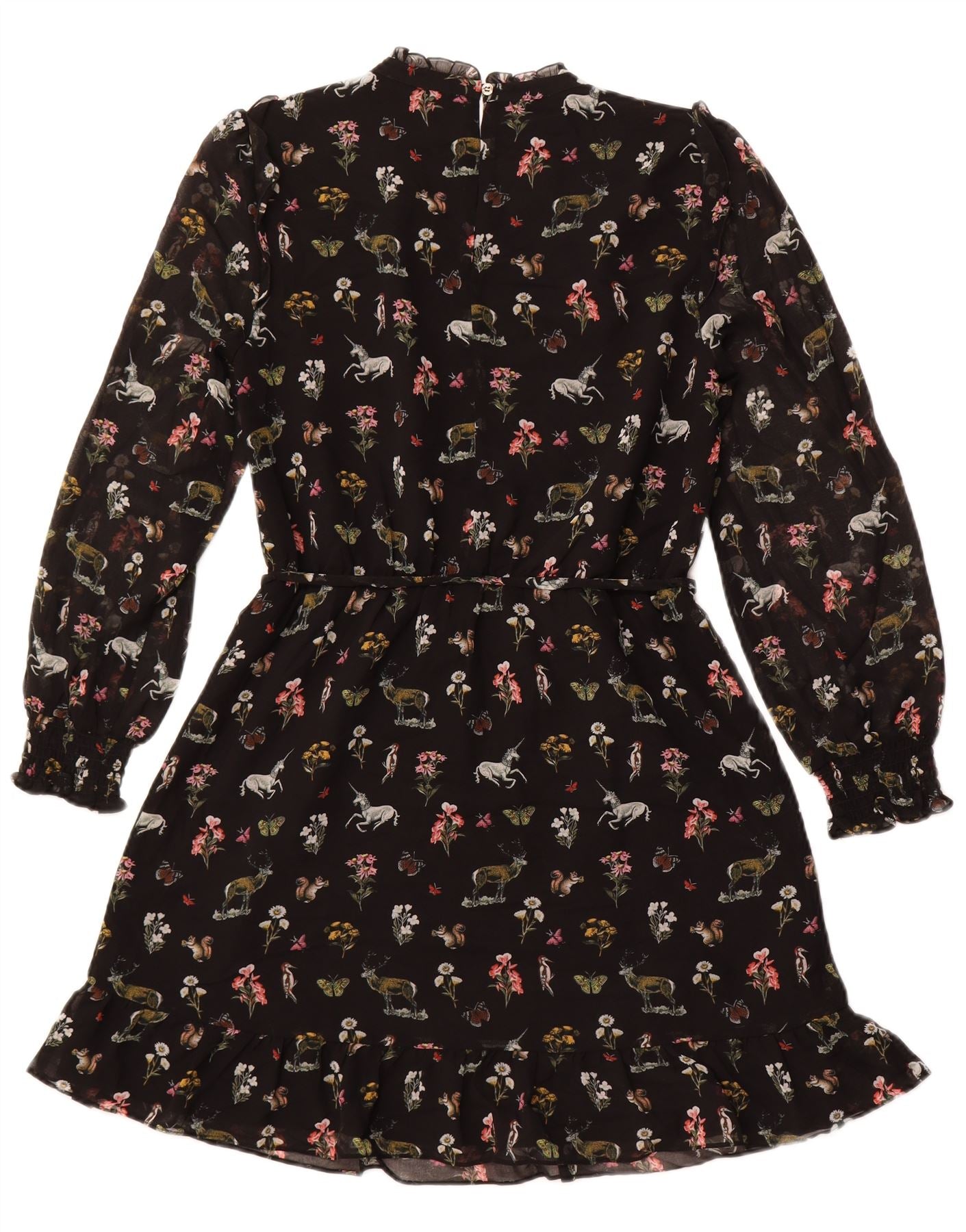 OASIS Langarm-A-Linien-Kleid für Damen, UK 12, Mittelschwarz, Blumenmuster, Polyester