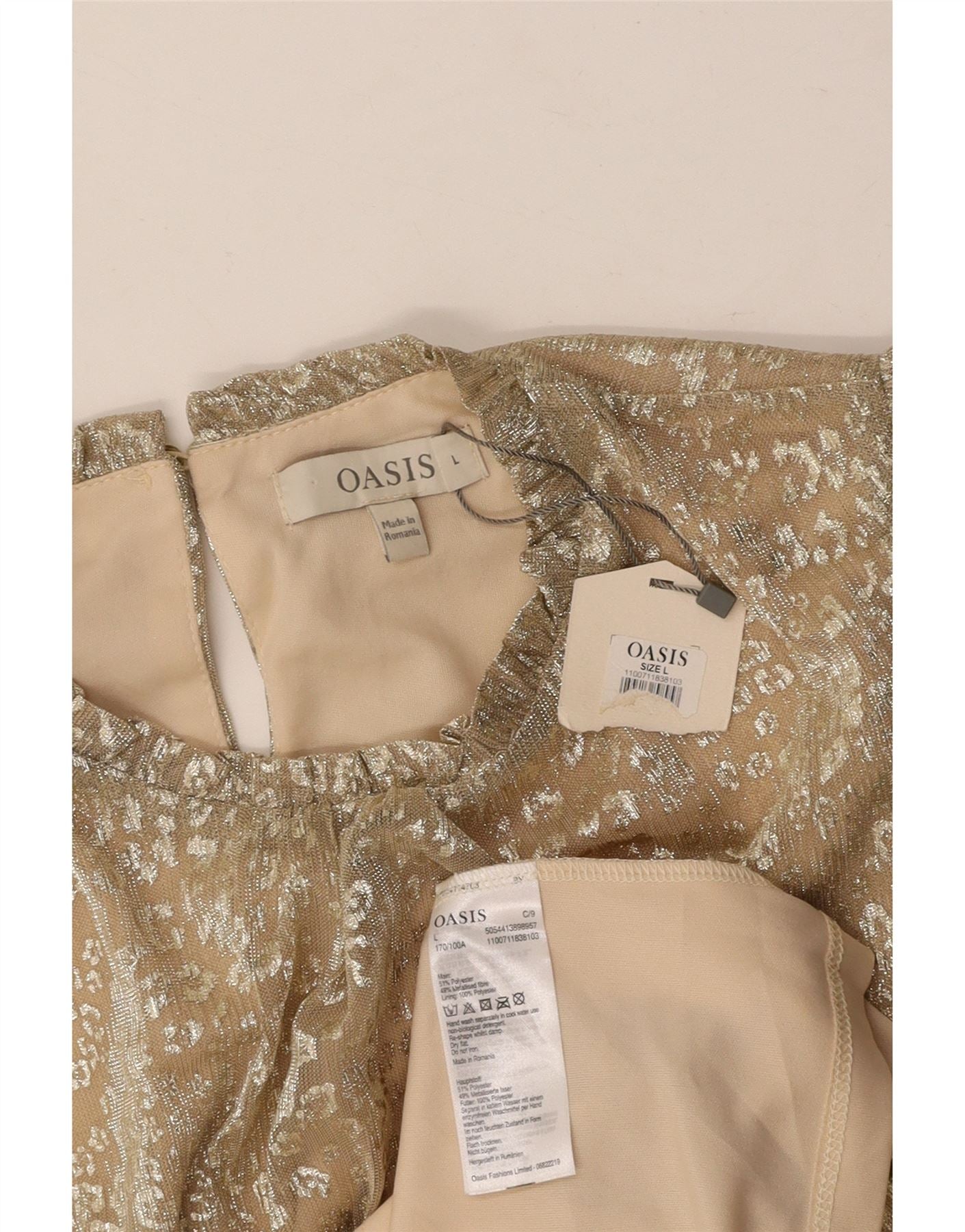 OASIS Ärmelloses Damen-Blusenoberteil, UK-Größe 44, Größe L, beige, mit Tiermuster